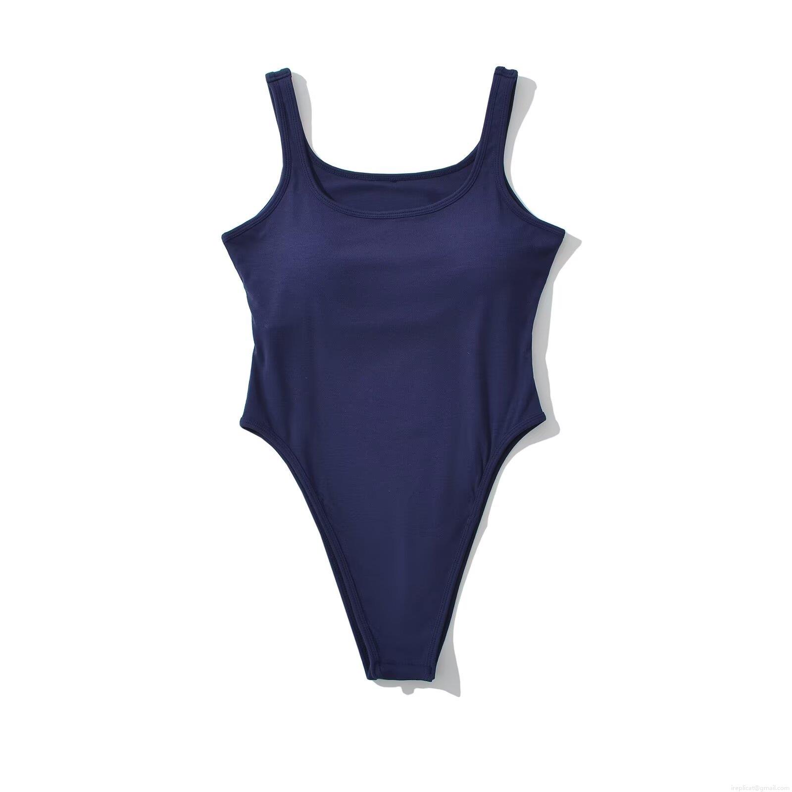 Solid Color, Screw Thread, High Fork, Square Collar, U-neck, Fine Rib Knit