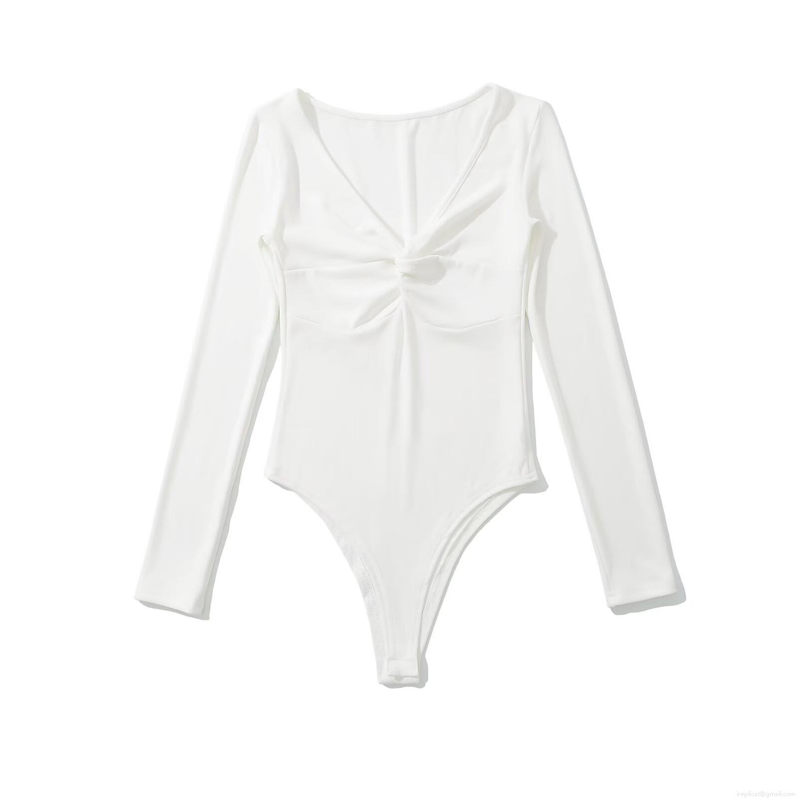 Solid Color, Knot Design, Deep V-neck, Slim Fit