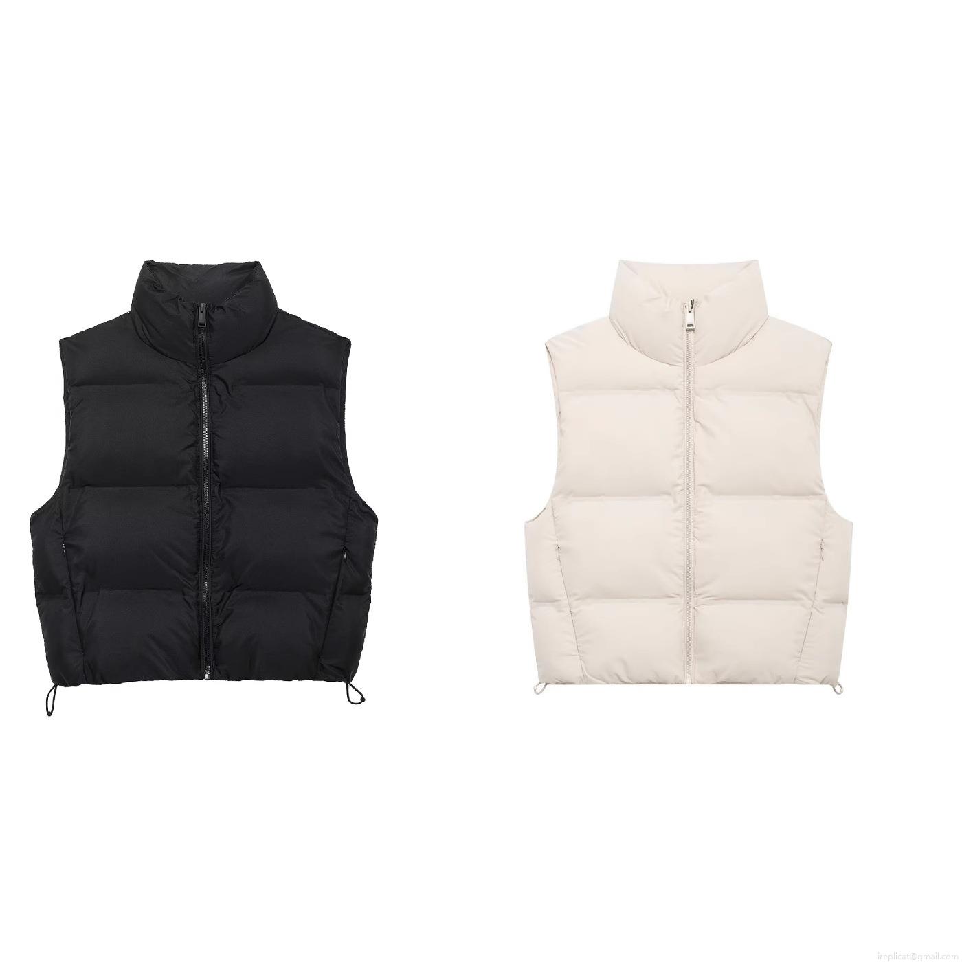 Solid Color, Metal Zipper, Quilting, Stand-up Collar Design, Drawstring At The Hem