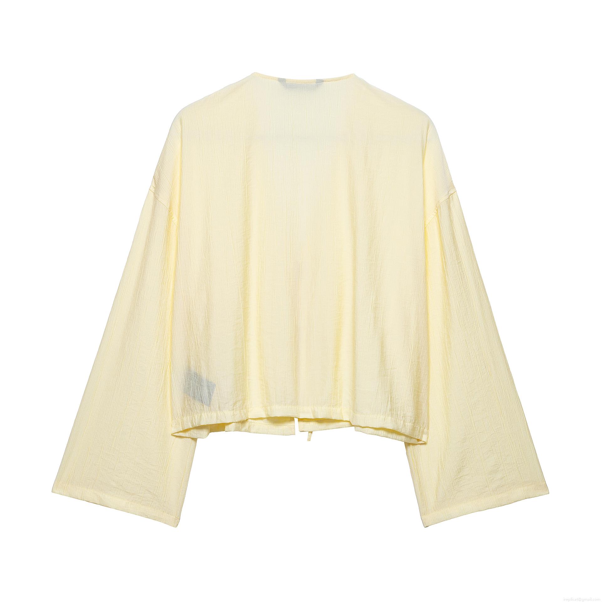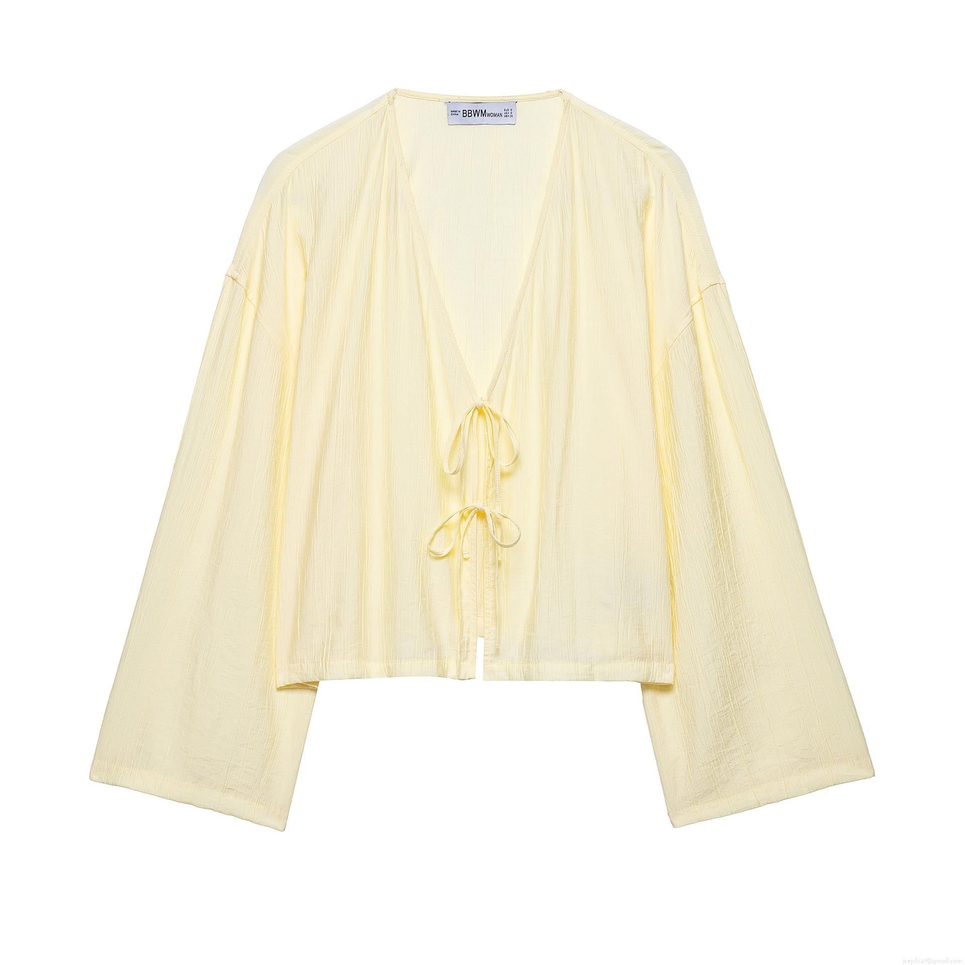Solid Color, Drawstring, Strap Design, Vertical Fold Texture, Deep V-neck, Kimono Collar, Pleating Process