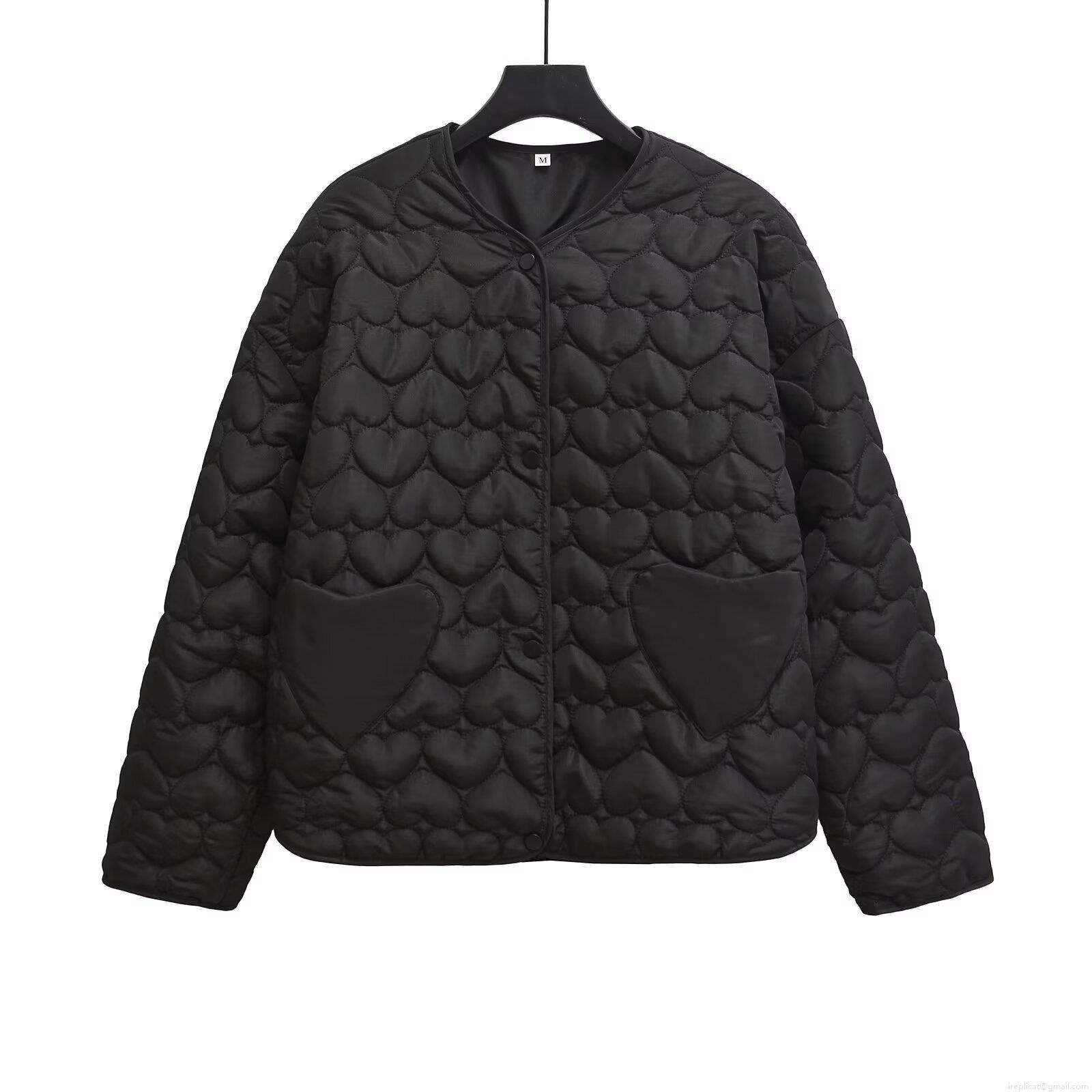 Patch, Single-breasted, Heart-shaped Quilting, Heart-shaped Pocket