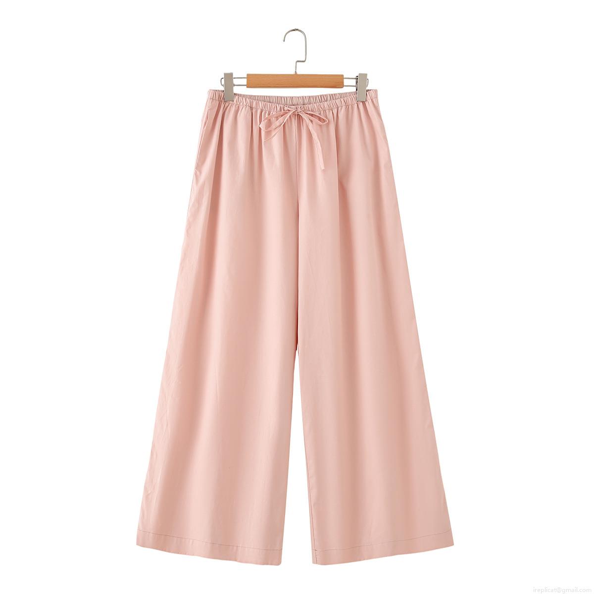 Solid Color, Drawstring, Elastic Waistband, Lapel, Wide-leg