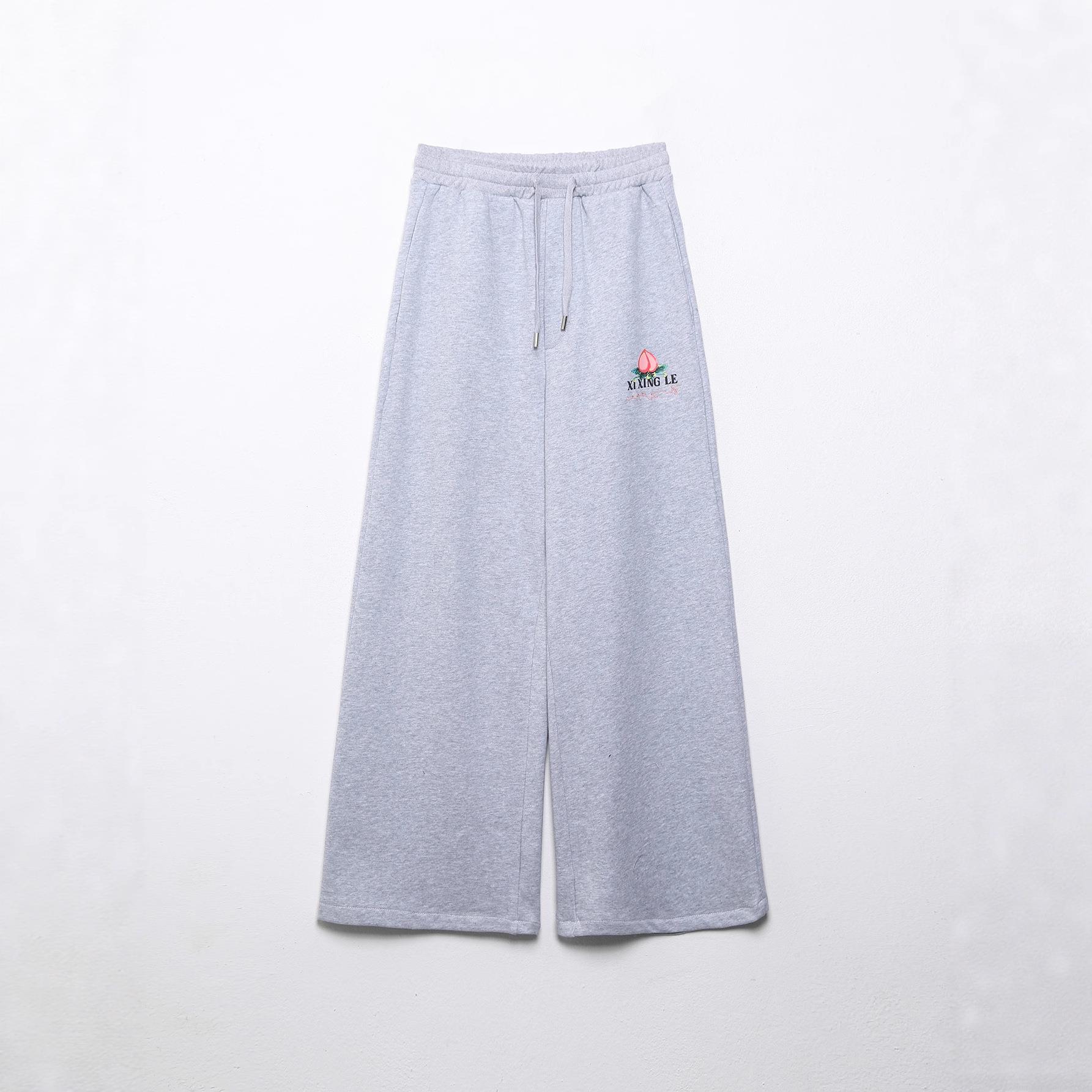 Embroidery, Letters, Printing, Drawstring, Peach, Elastic Waistband