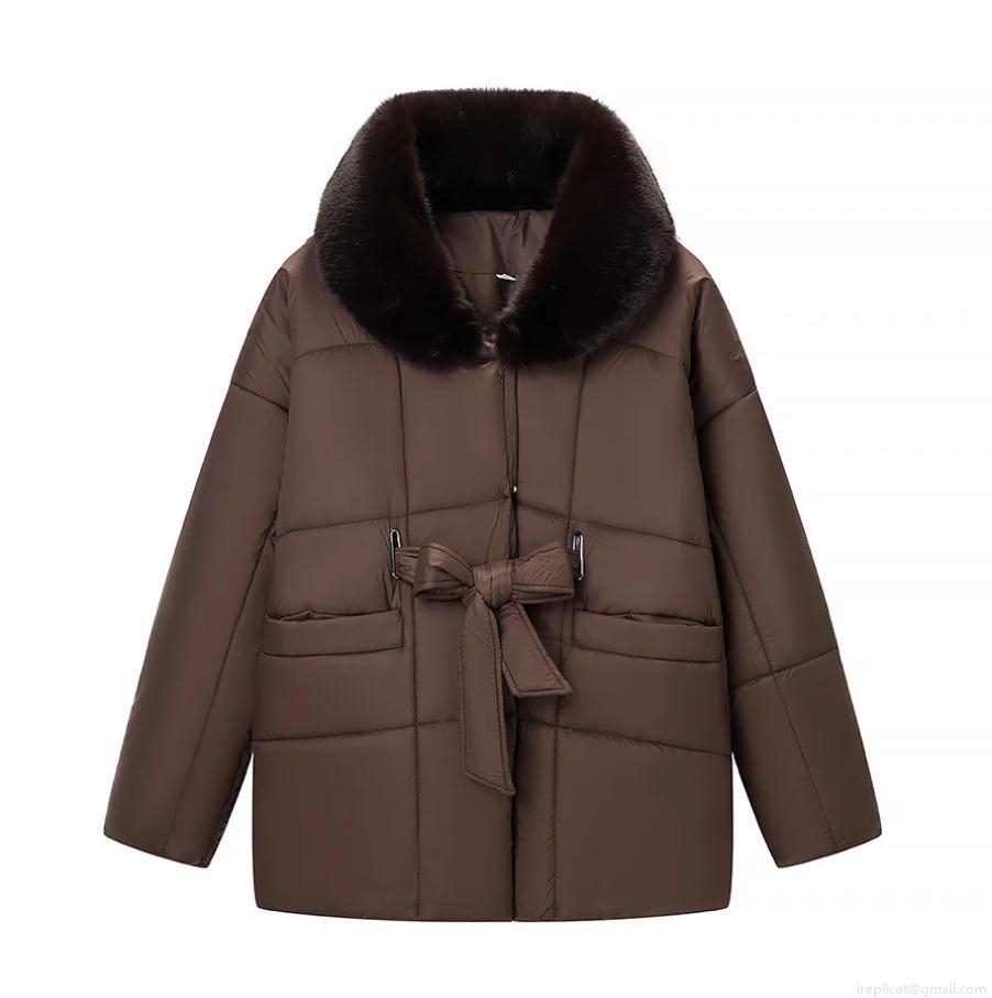 Solid Color, Splicing Design, Quilting, Large Fur Collar, Bow Belt