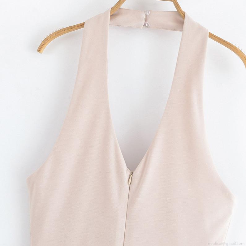 Solid Color, Pocket, Neckband, Backless, Micro-horn, Deep V
