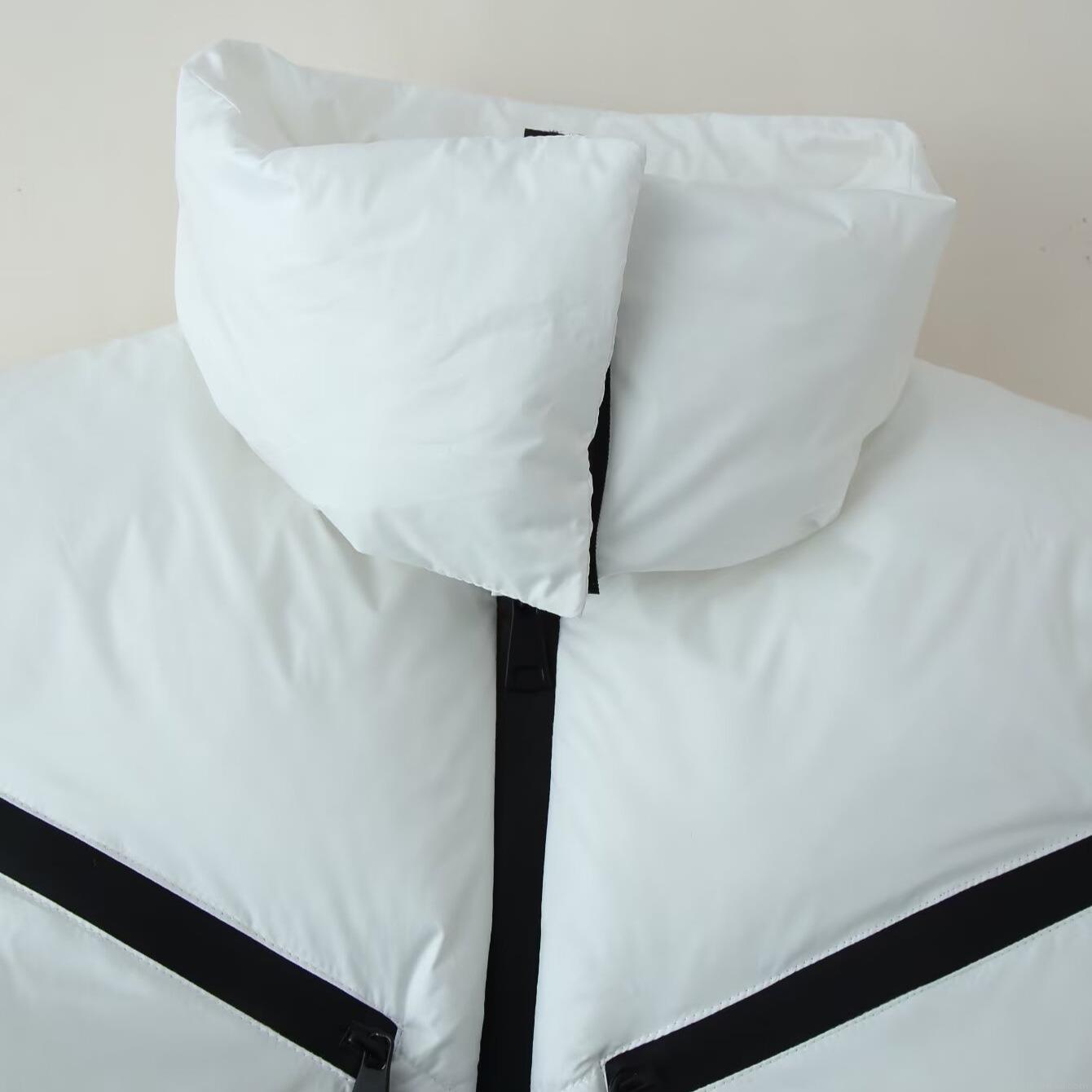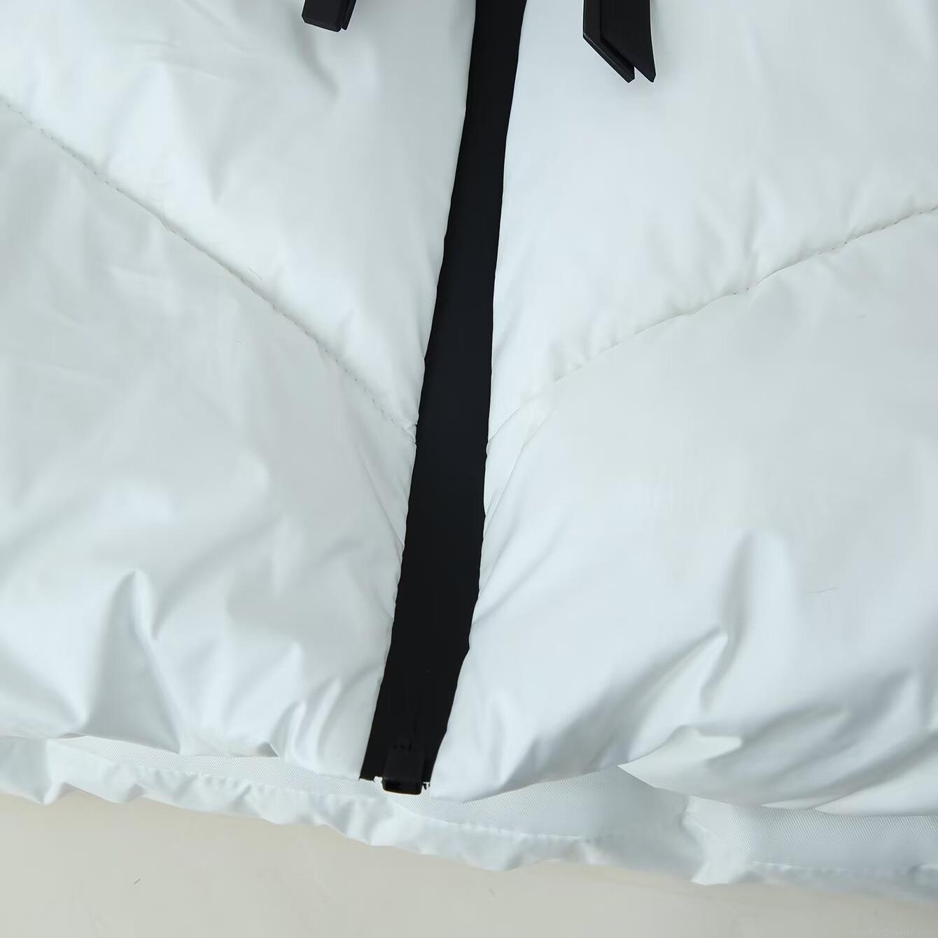 Solid Color, Stand-up Collar, V-shaped Quilting, Ribbon Decoration, Zippered Pocket