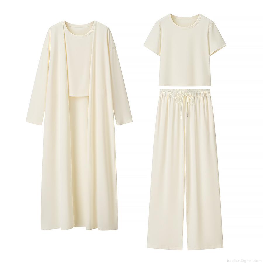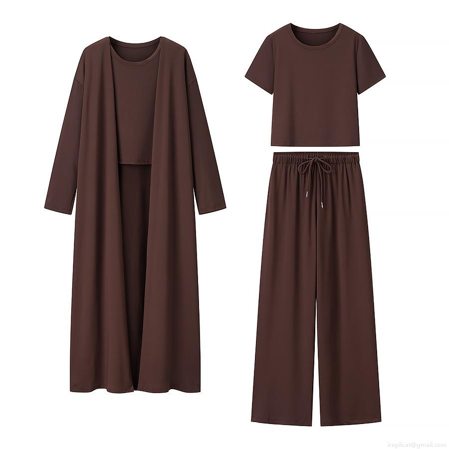 Solid Color, Three-piece Set, Collage, Drawstring Design, Wide-leg Style