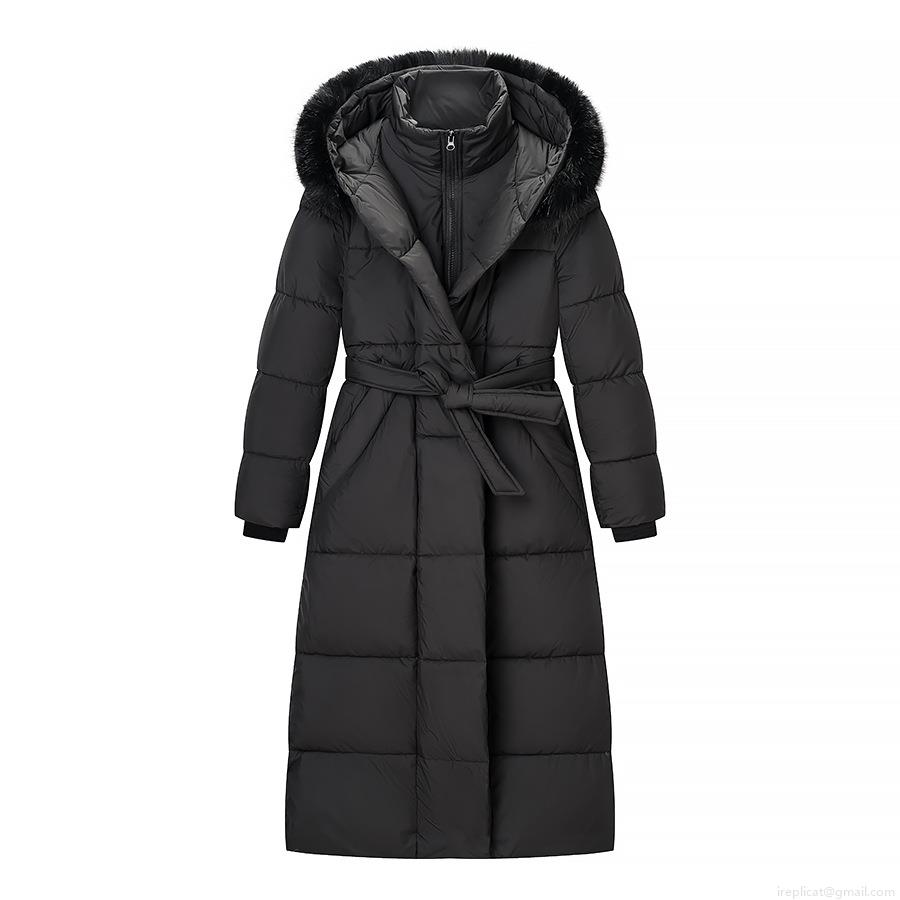 Solid Color, Pocket, Quilting, Fur Collar, Hood, Waist Tie
