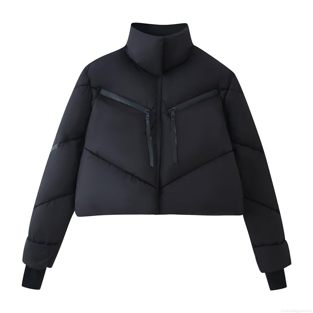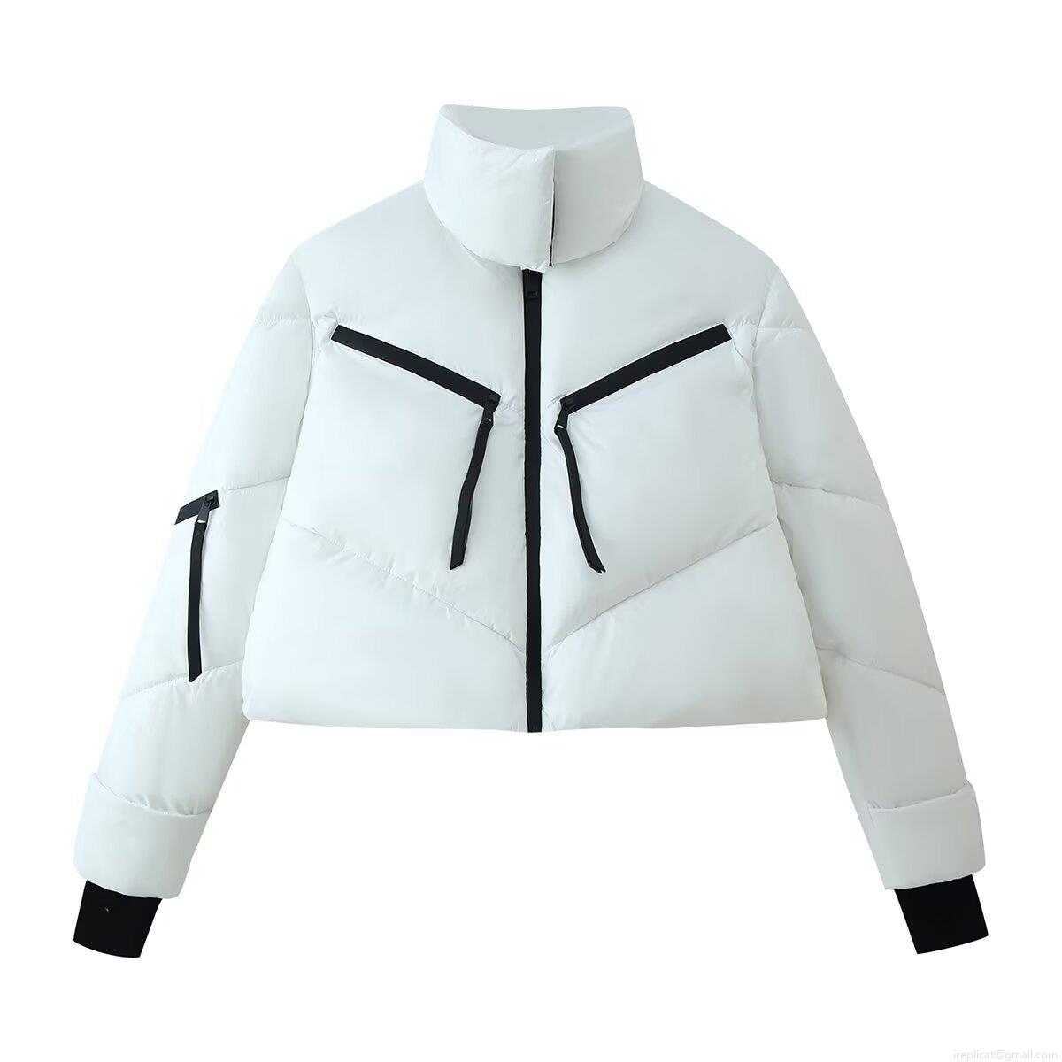 Solid Color, Pocket, Color Blocking Design, Stand-up Collar, Zipper Decoration, Ribbed Cuffs, Drawstring Adjustment