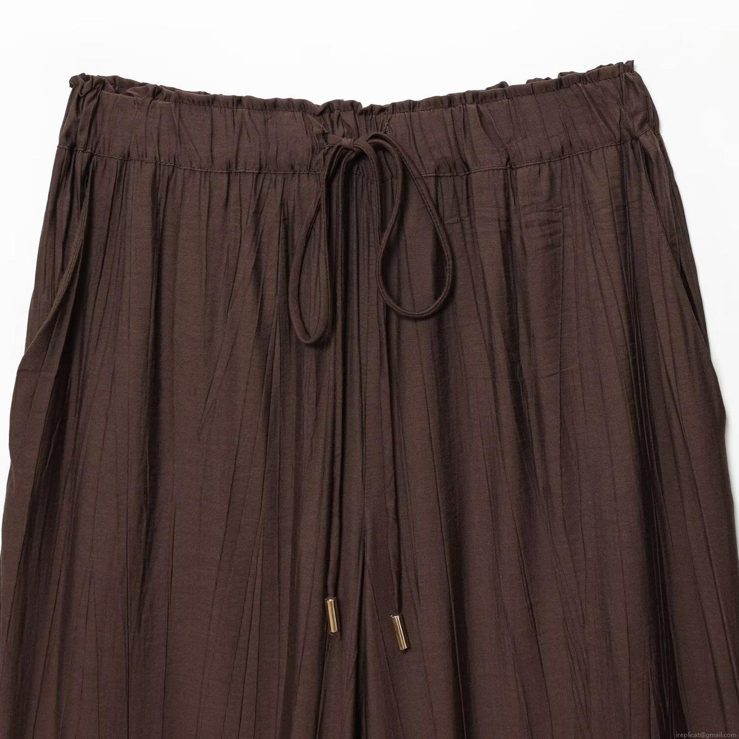 Solid Color, Pleats, Drawstring, Gold Buttons