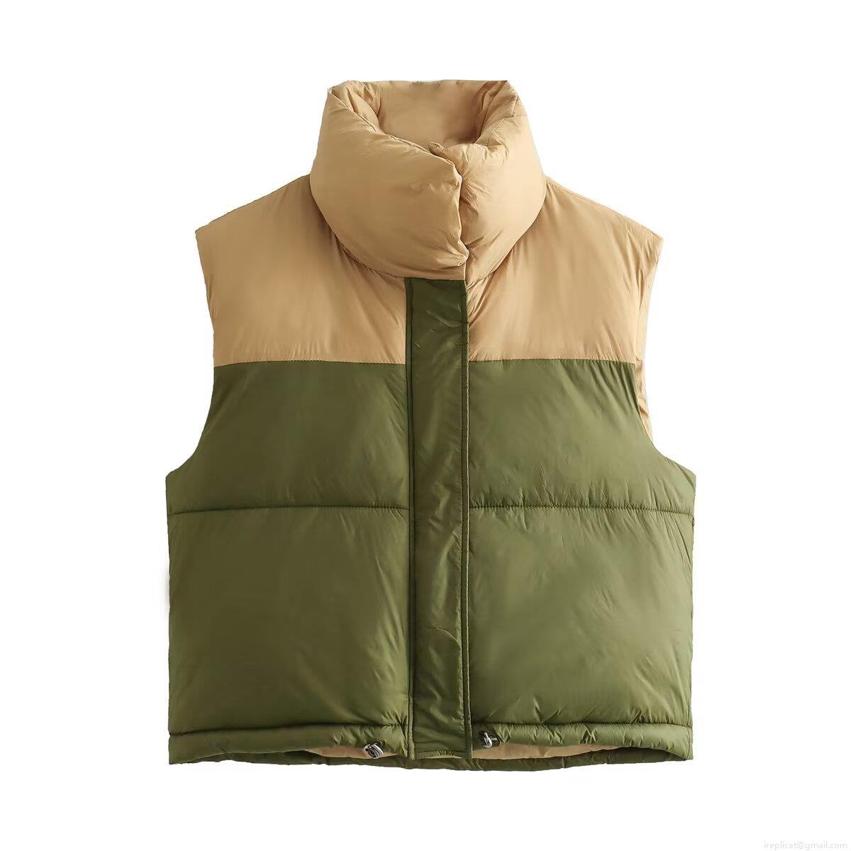Splice, Color Blocking, Quilting, Drawstring, Stand-up Collar