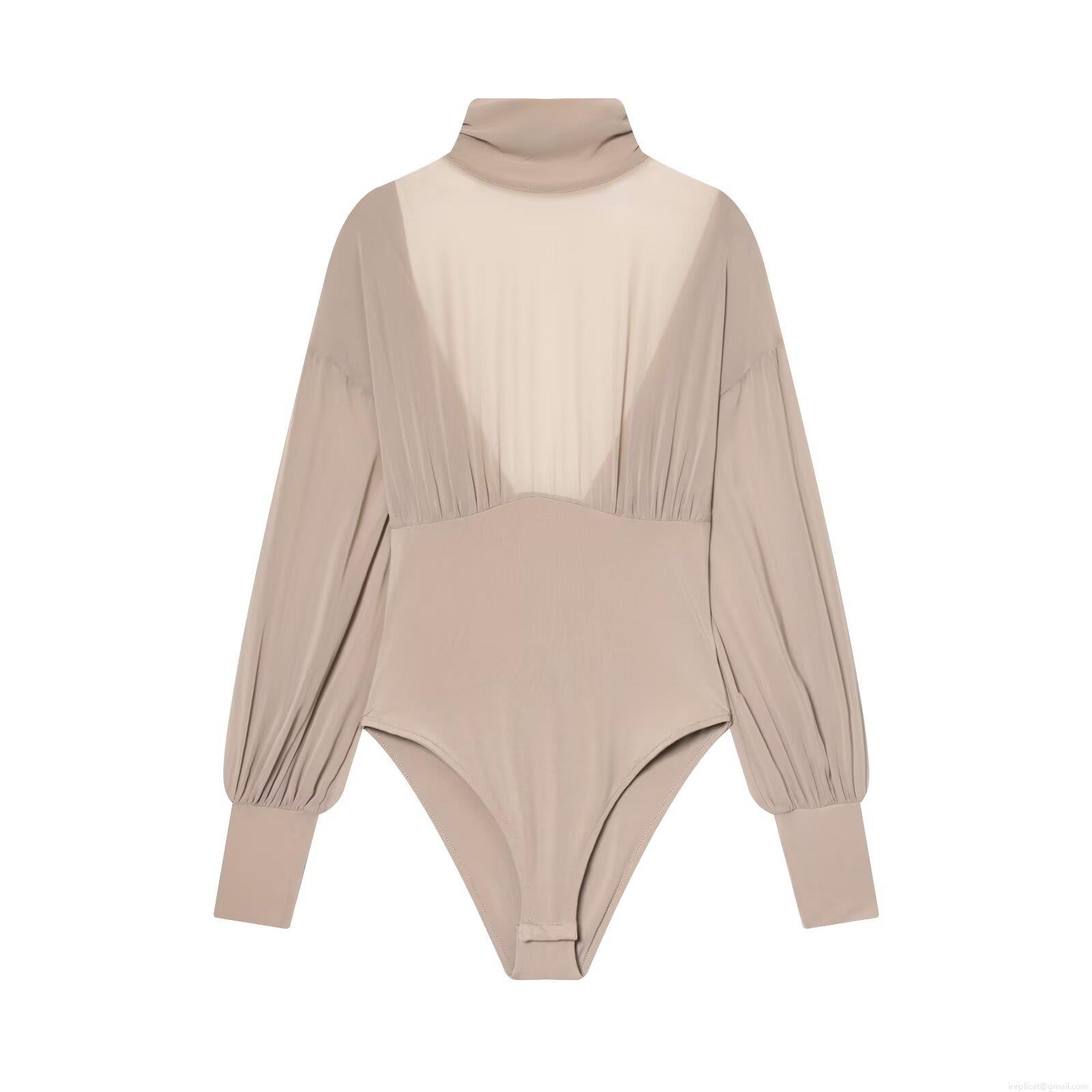 Solid Color, Gathering, Mesh Splicing, Big Backless, Turtleneck