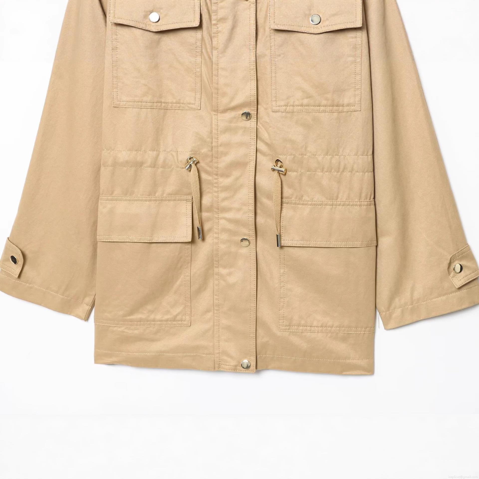 Solid Color, Drawstring, Hood, Metal Snap, Flap Pocket