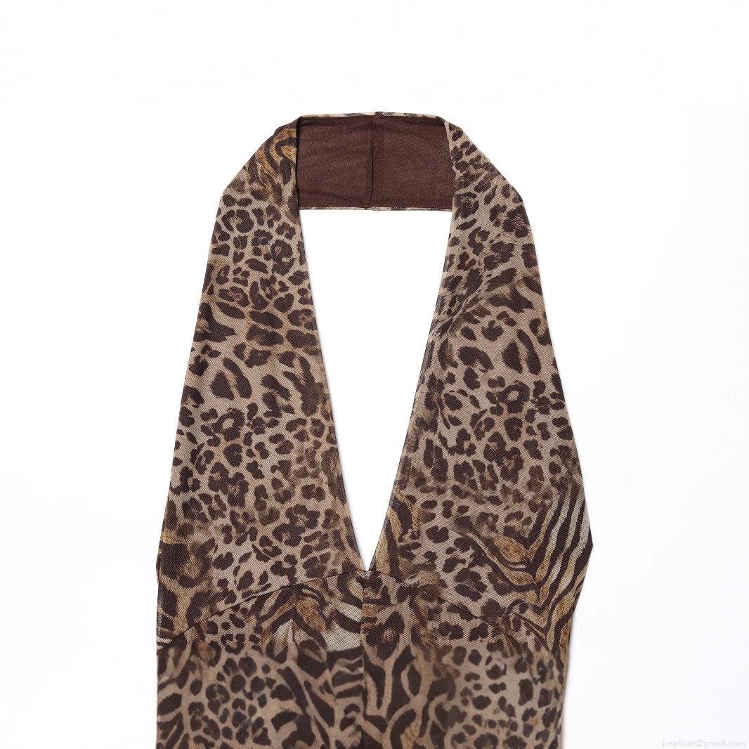 Leopard Print, Animal Print, Backless, Neckband Design, Deep V-neck