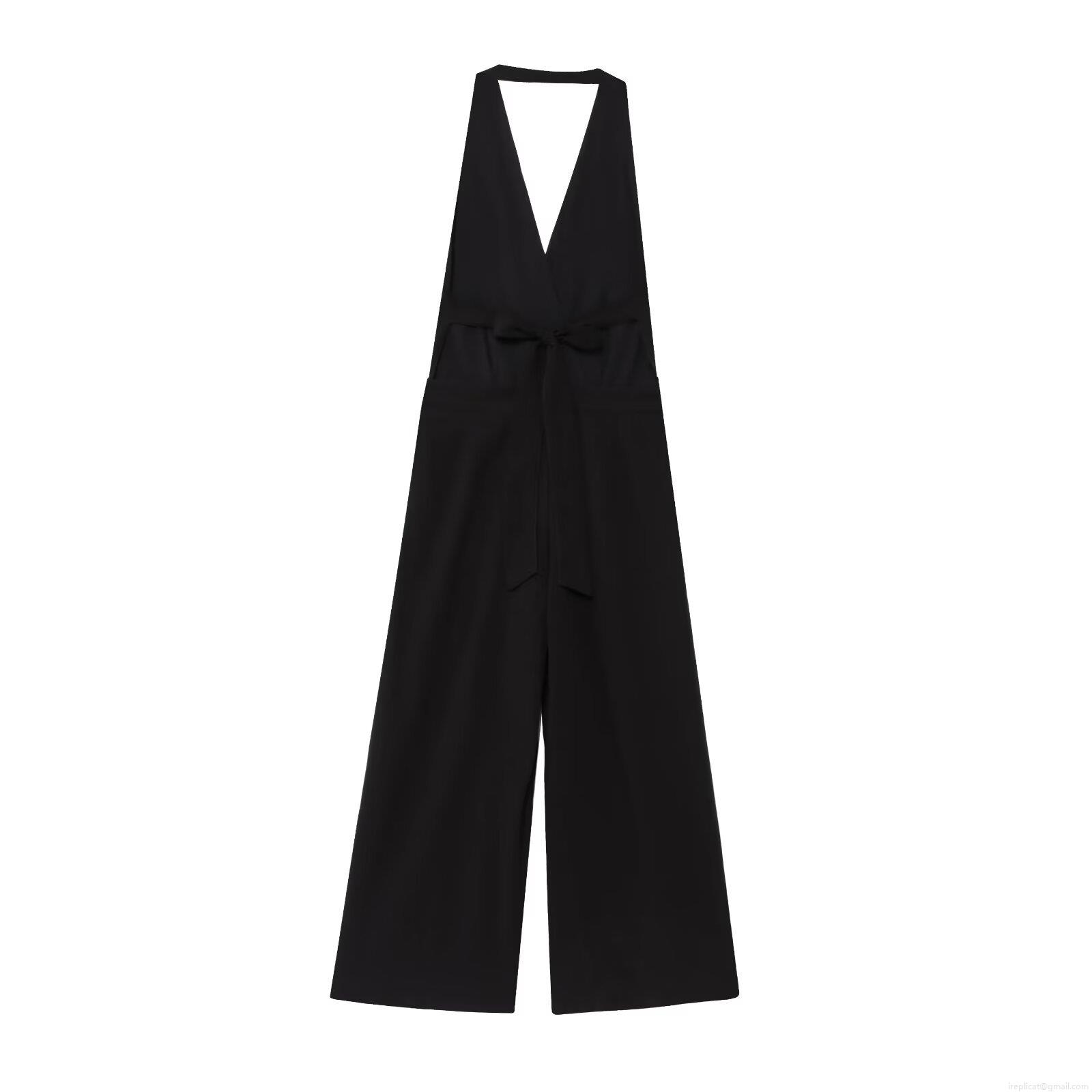 Solid Color, Bow, Neckband, Lace, Wide-leg, Deep V, V-neck On The Back