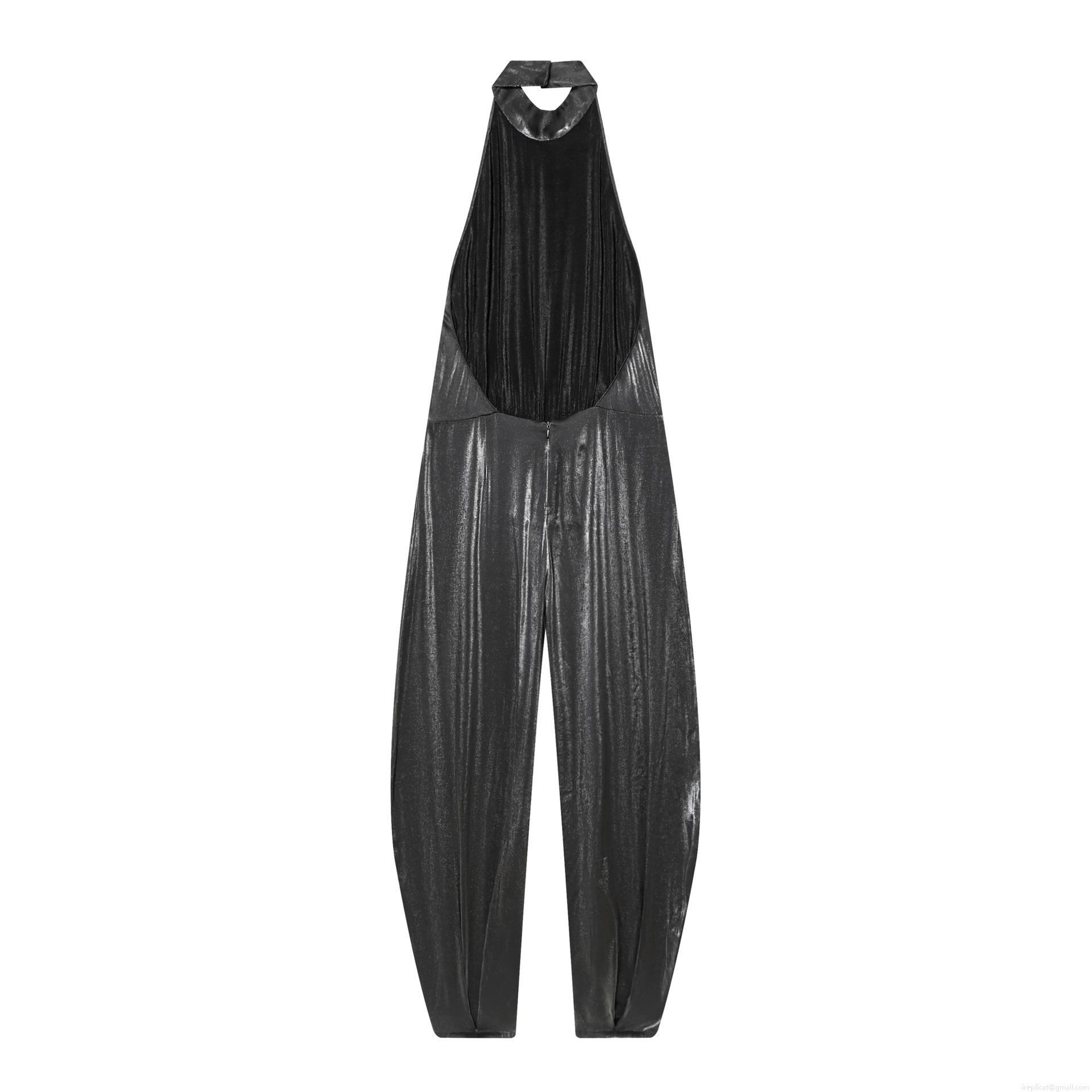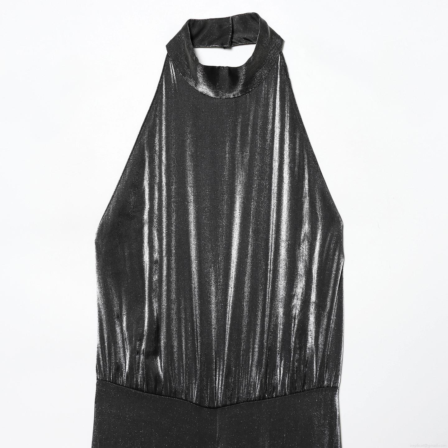 Solid Color, Pleats, Neckband, Backless, Metallic Texture