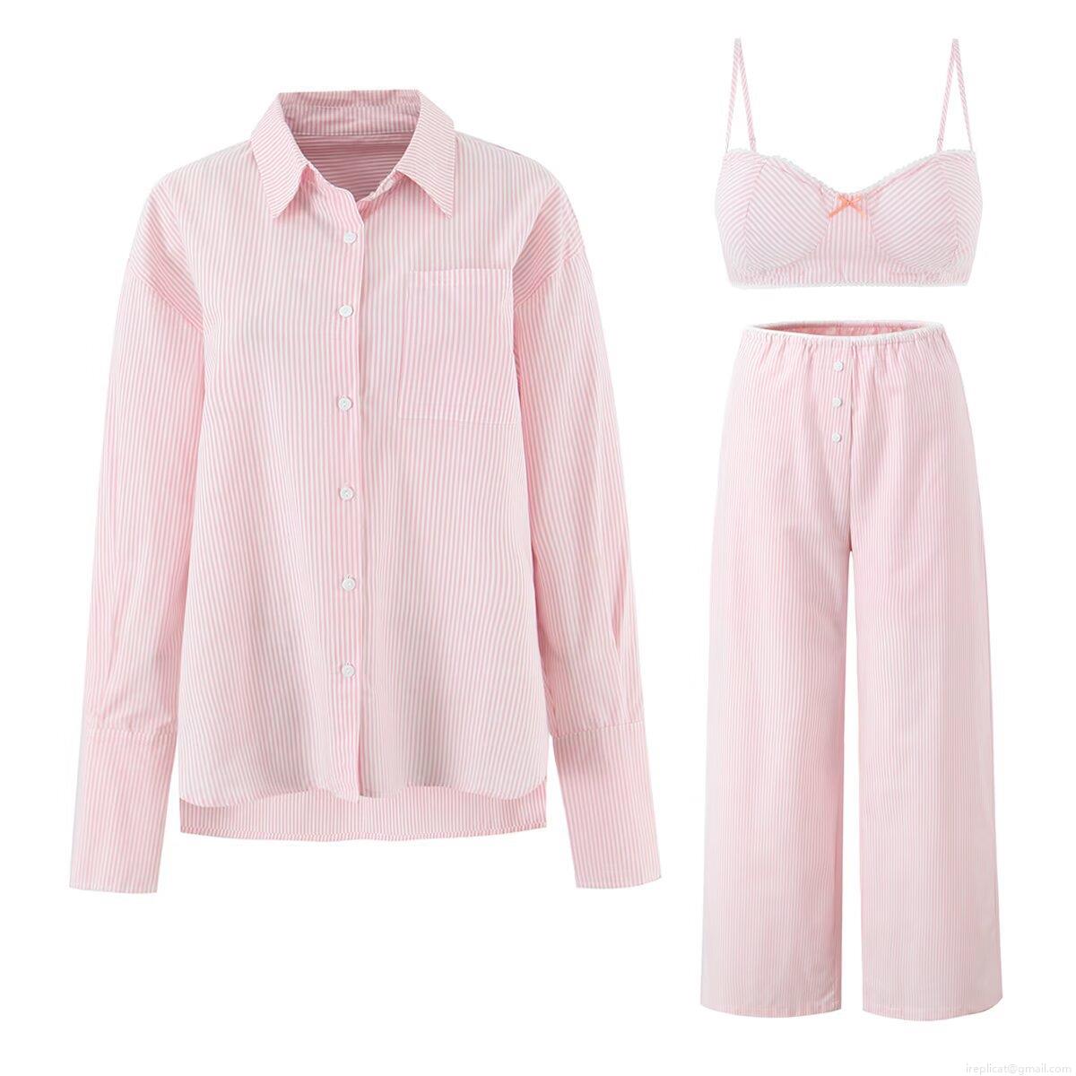 Bow, Pinstripes, Single Pocket, Button Decoration, White Lace Trim