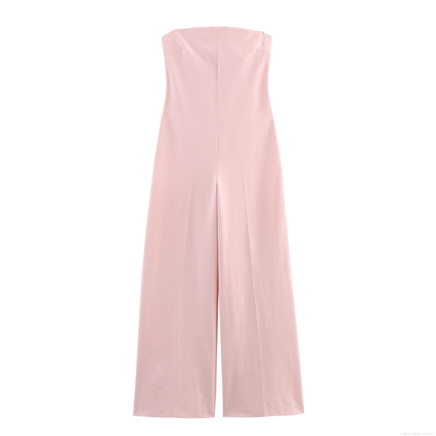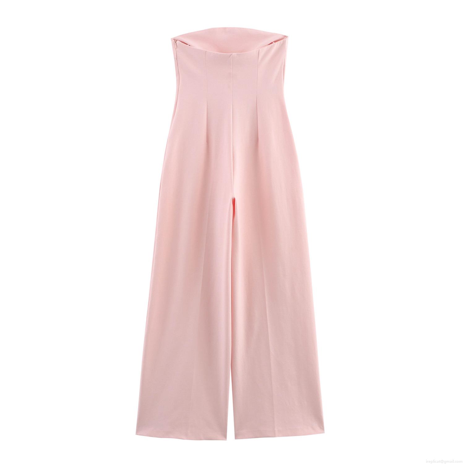 Solid Color, Backless, Strapless, Wide-leg, High-waisted