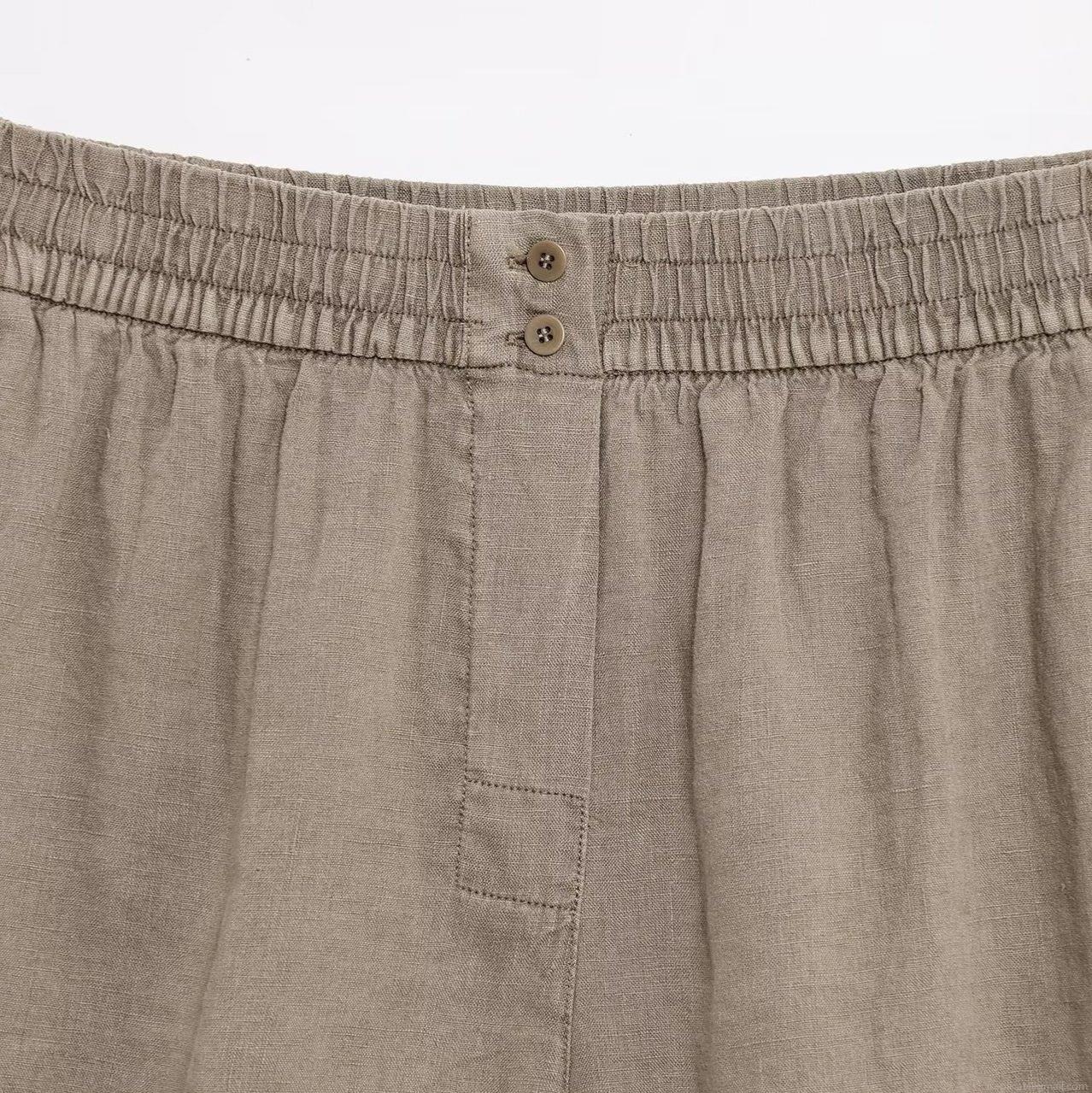 Solid Color, Elastic Waistband, Button Decoration, Flax Texture