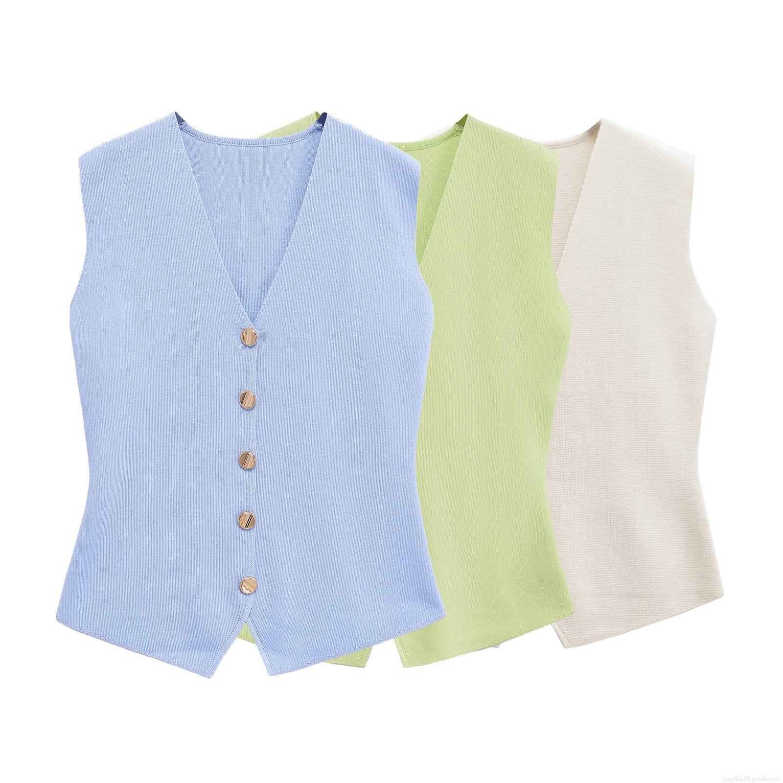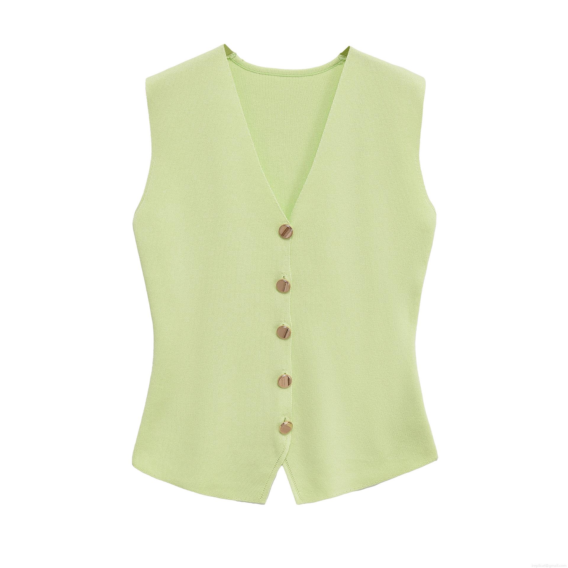 Solid Color, V-neck, Pleated Splicing, Gold Buttons