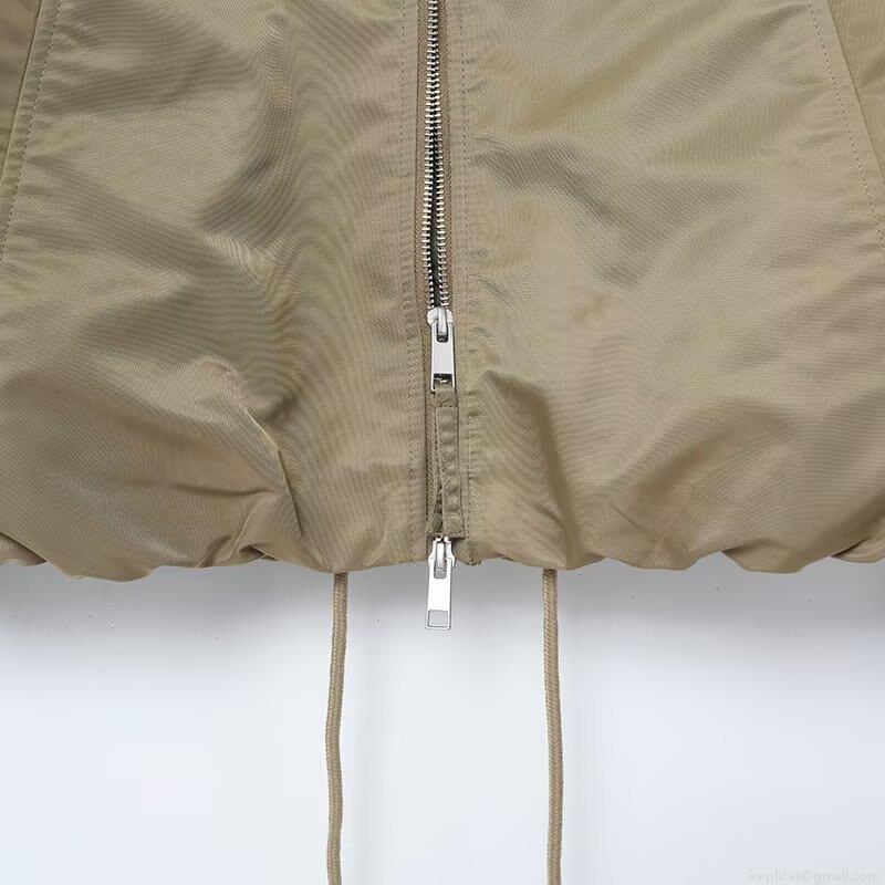 Solid Color, Zipper, Drawstring Hem, Detachable Fur Collar, Arm Pockets