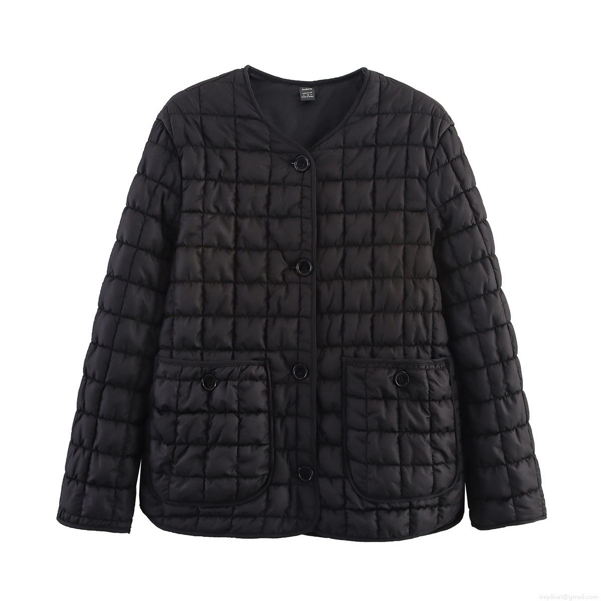Solid Color, Pocket, Single-breasted, Quilting, Checkered Quilting