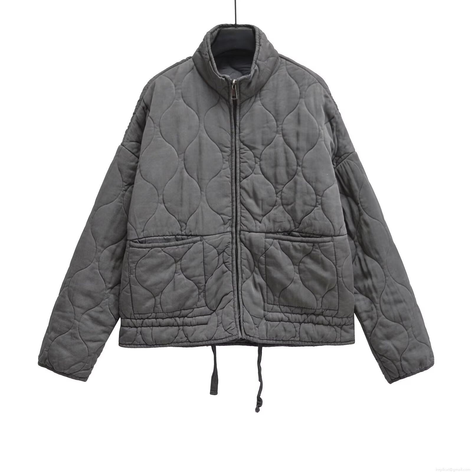 Zipper, Quilting, Stand-up Collar Design, Large Patch, Gourd Pattern, Drawstring At The Hem, Wavy Quilting