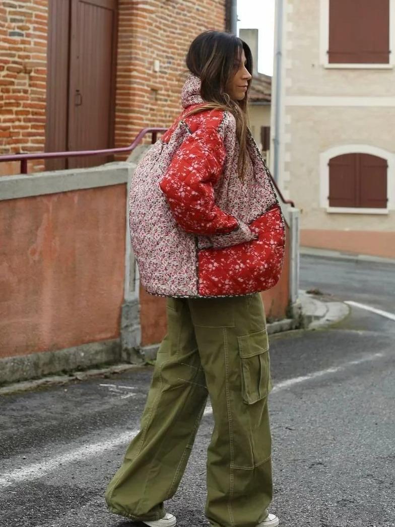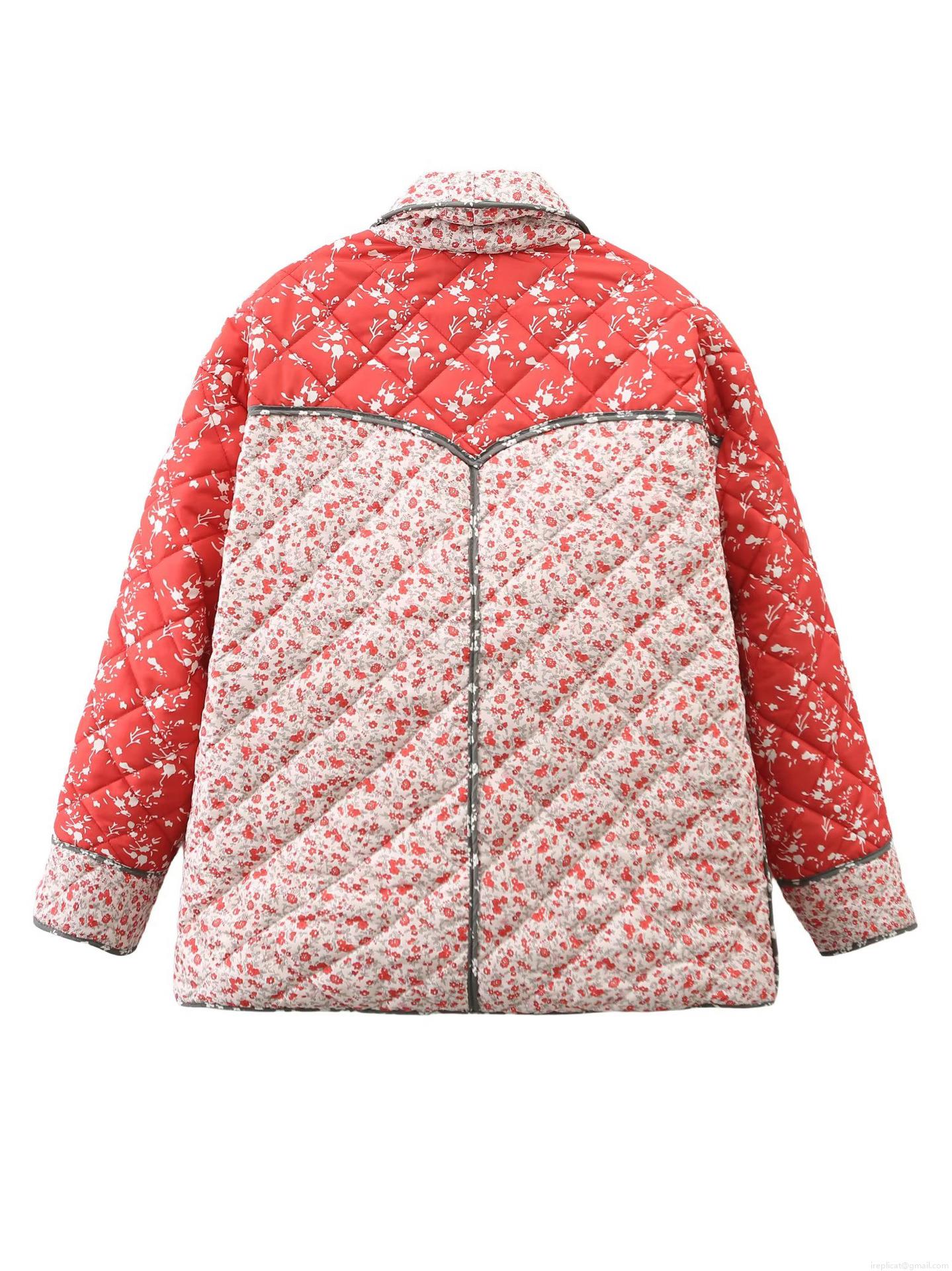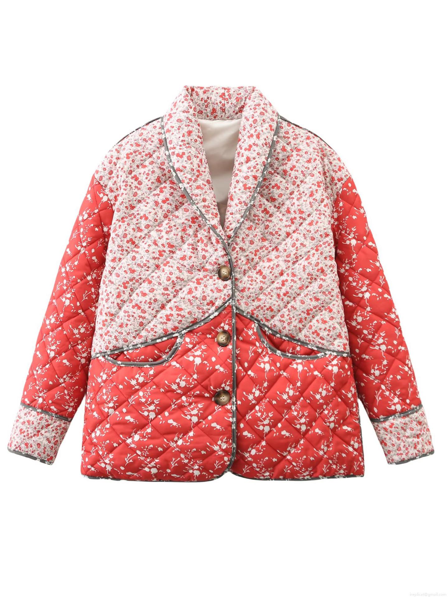 Splice, Floral Pattern, Quilting, Pleats, Color Blocking, Wooden Buttons
