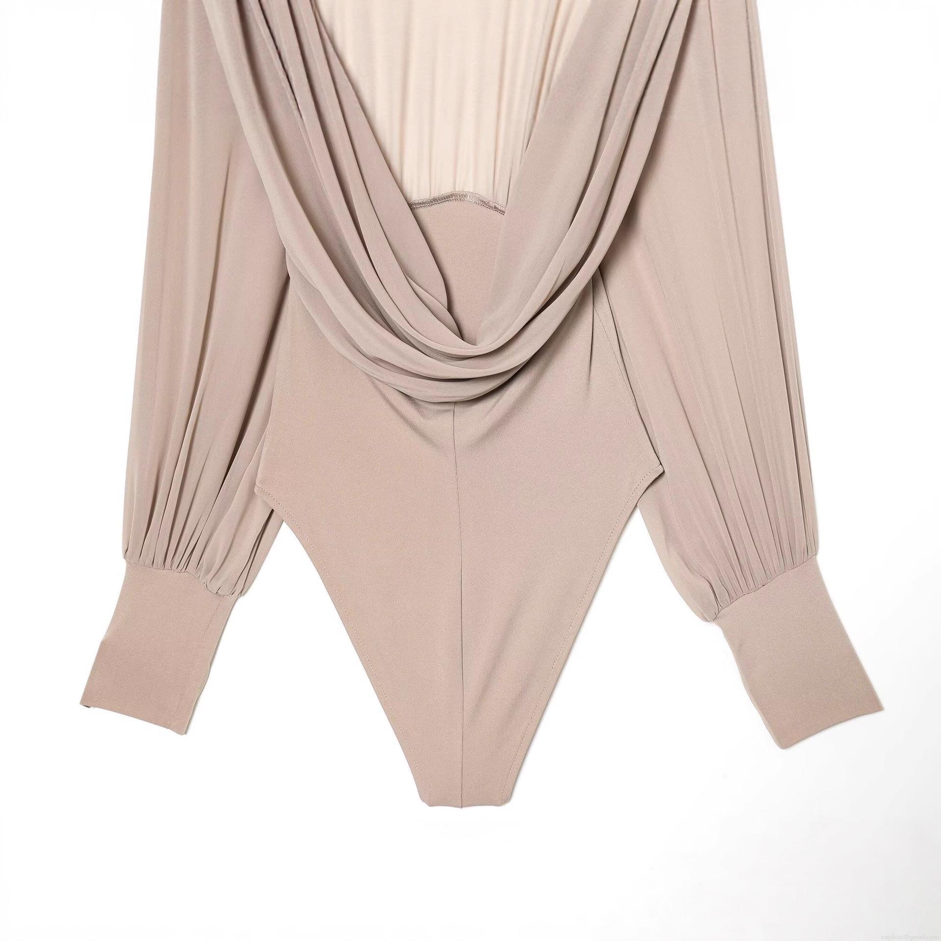 Solid Color, Splice, Pleats, Backless, Perspective, Puff Sleeves