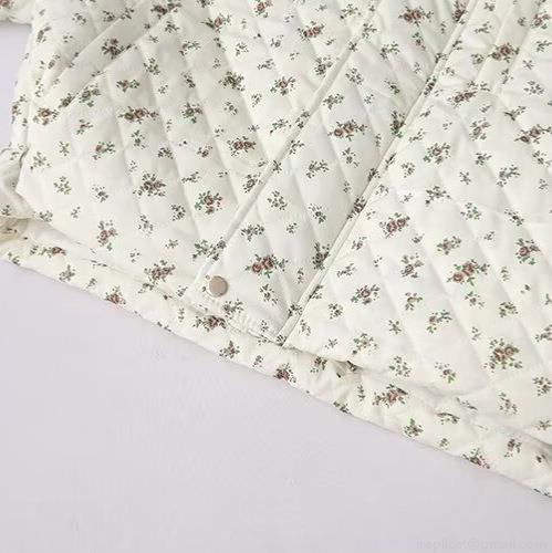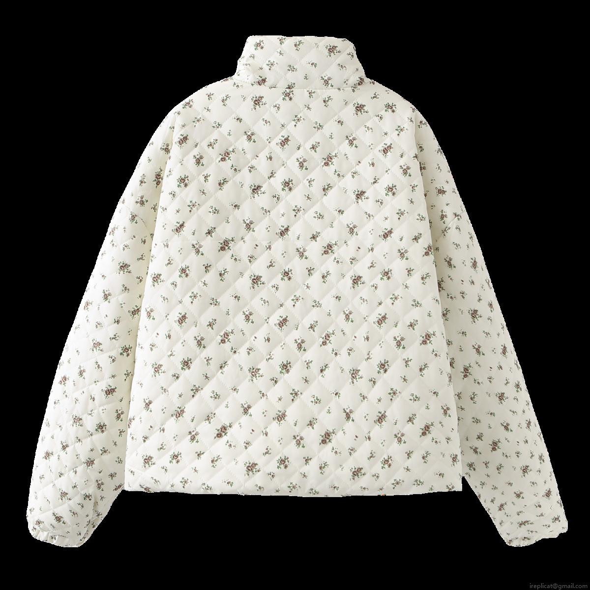 Floral Pattern, Metal Buckle, Stand-up Collar, Floral Print, Diamond Quilting