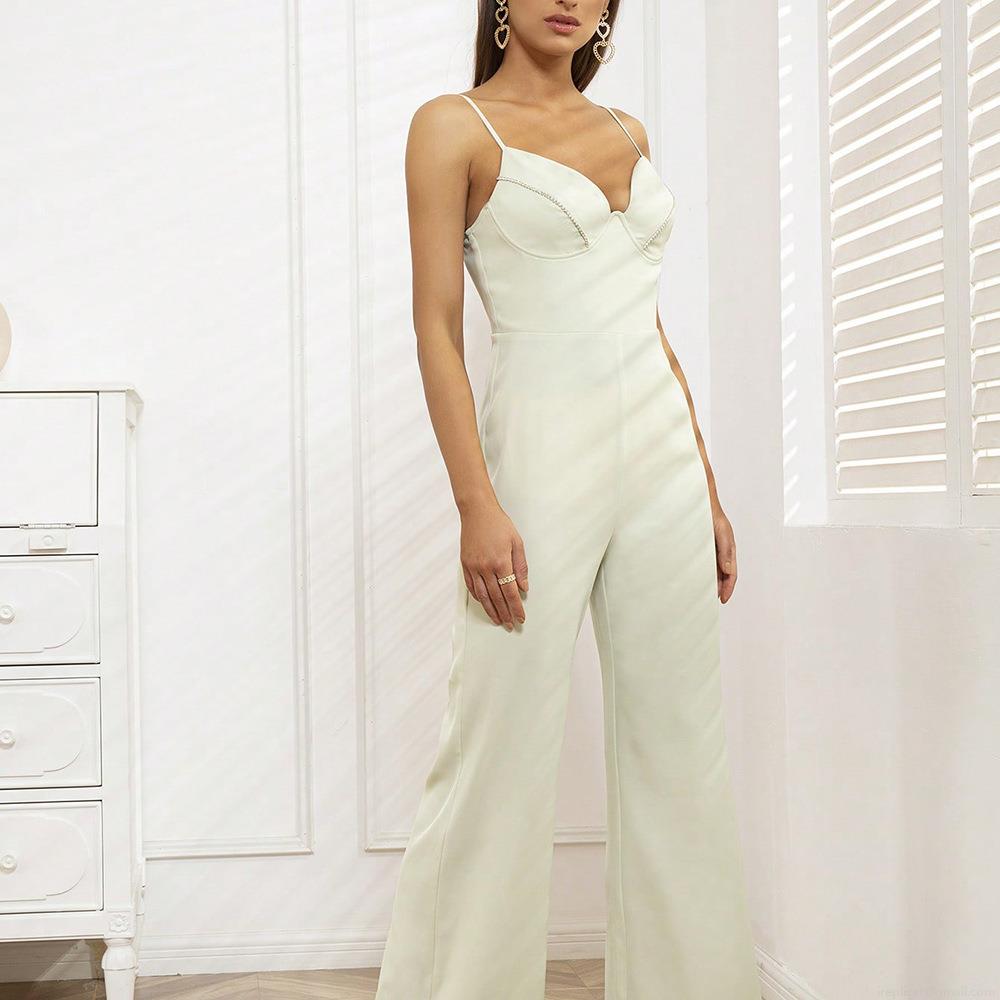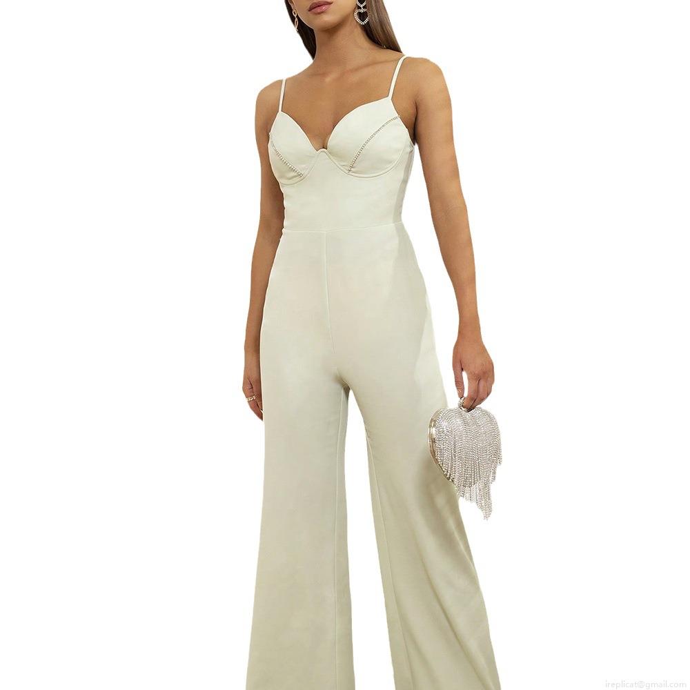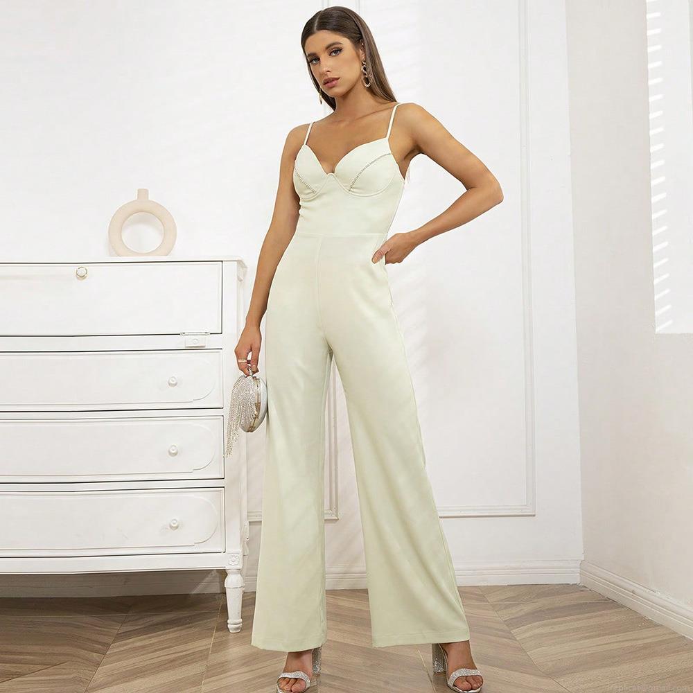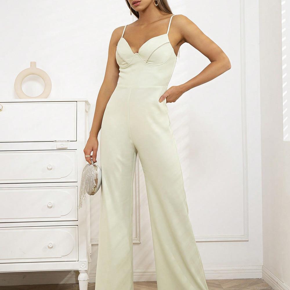 Solid Color, Backless, Wide-leg Pants, Thin Straps, Rhinestone Trim