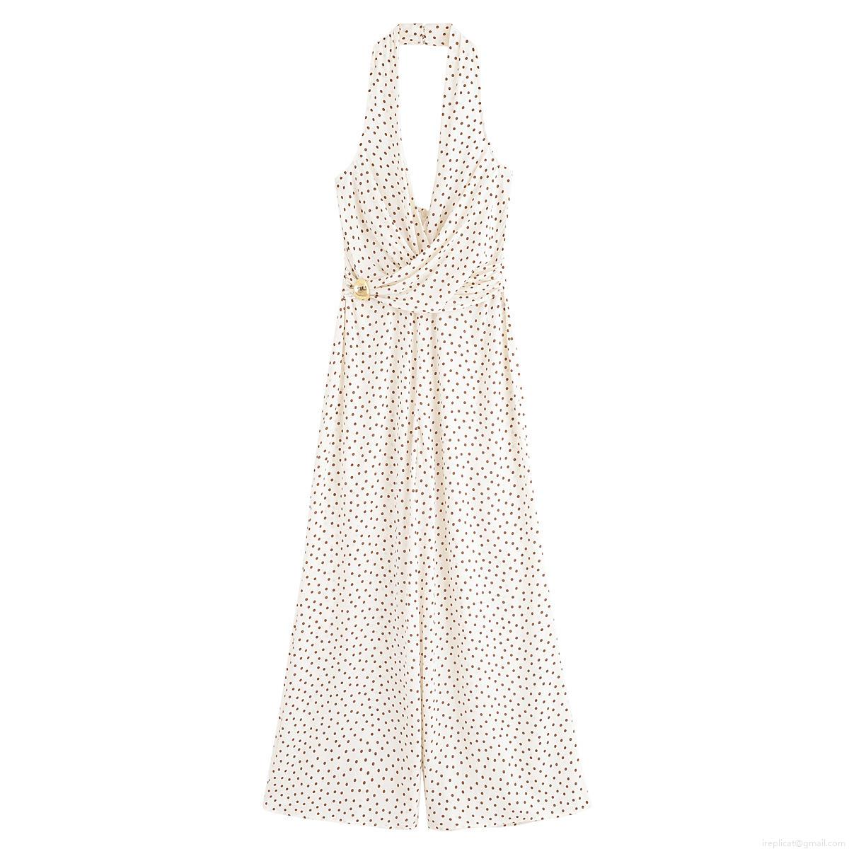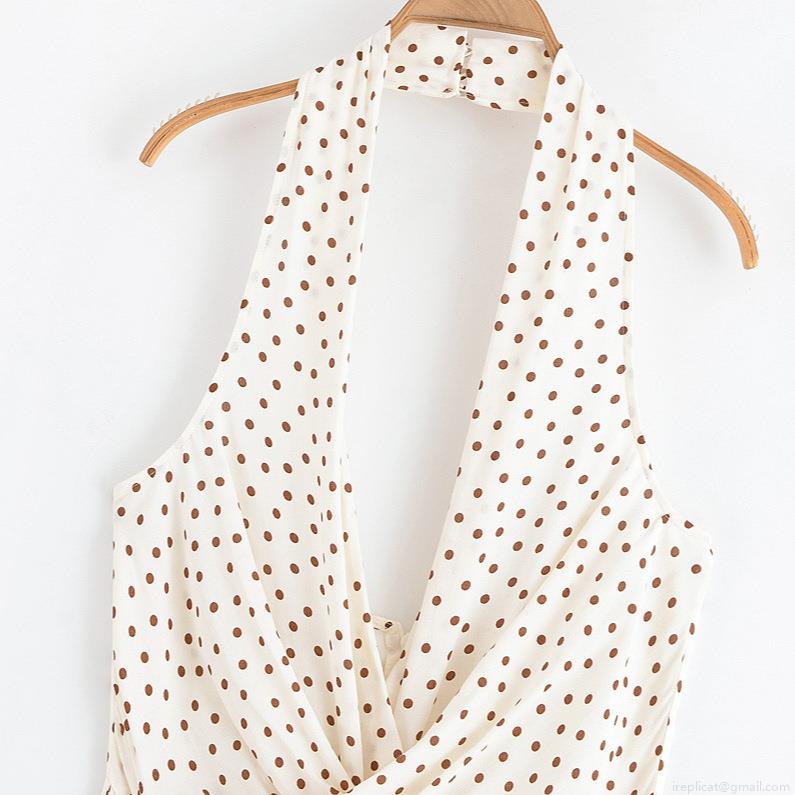 Polka Dots, Neckband, Backless, Button Decoration