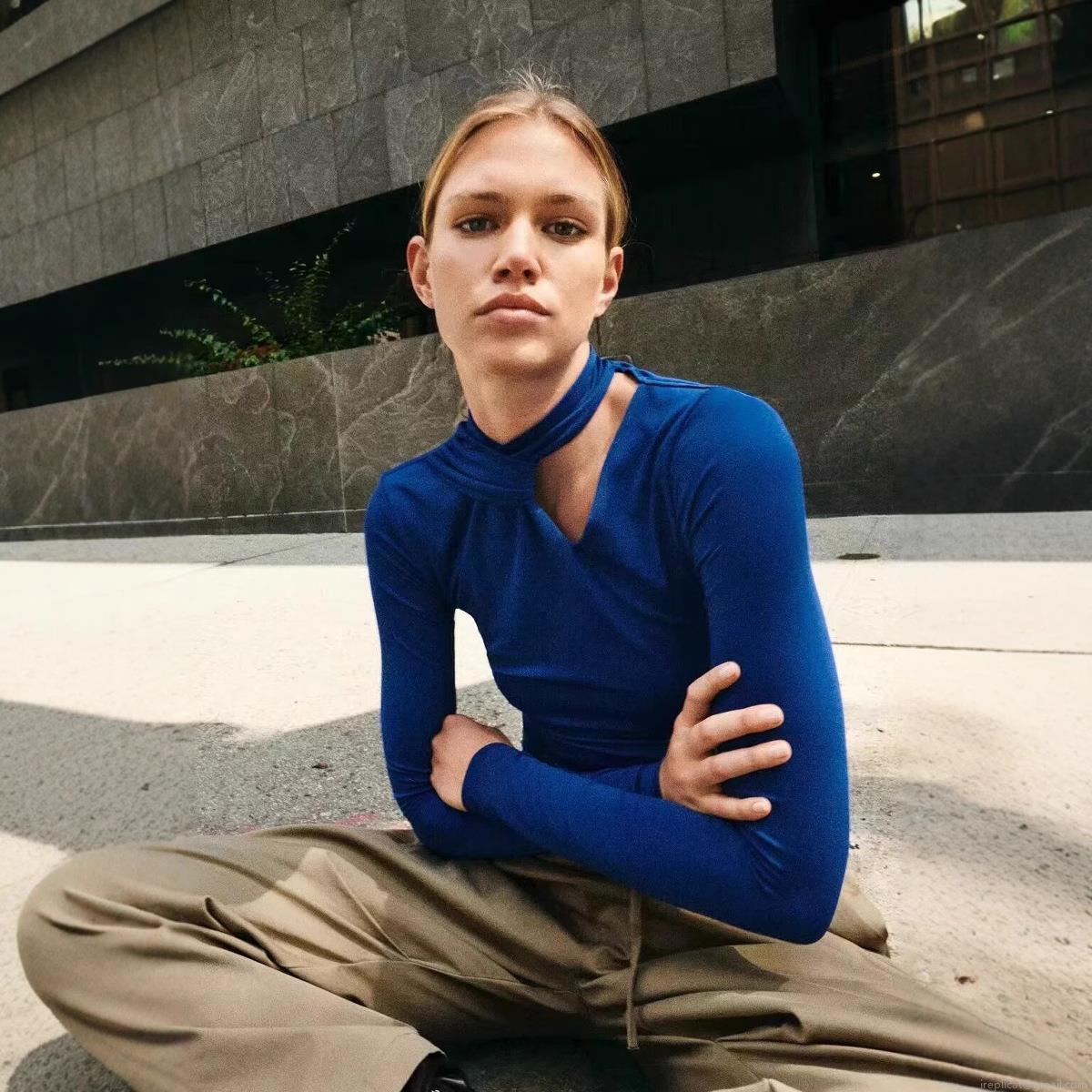 Solid Color, Turtleneck, Hollow Design, Slim Fit, Twisted Folds