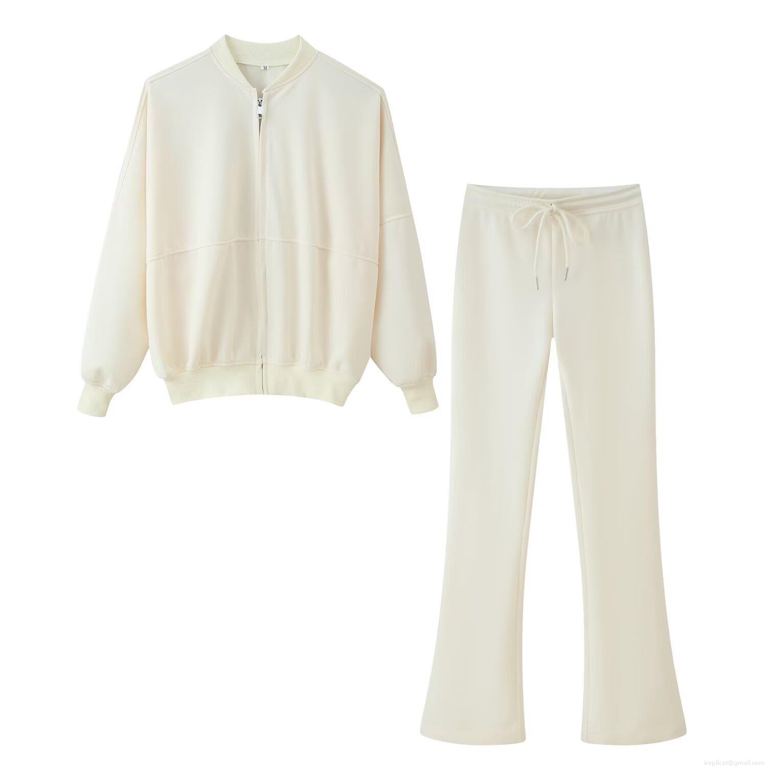 Solid Color, Collage, Zipper Decoration, Stand-up Collar Design, Flared Trouser Legs, High-waisted Drawstring