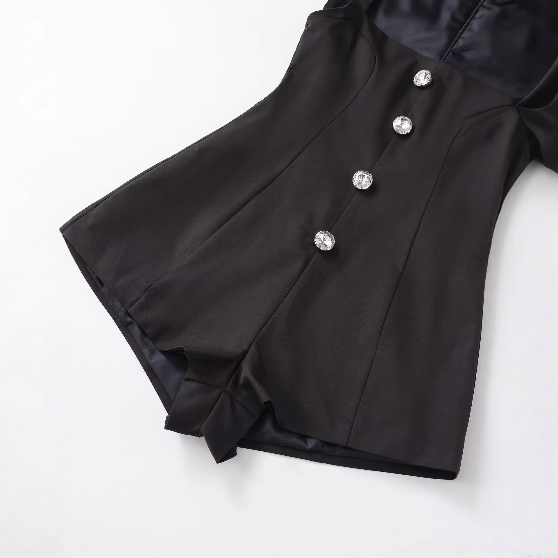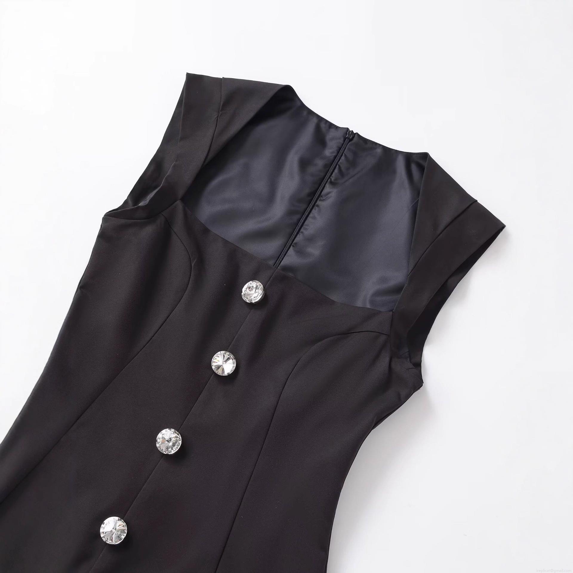 Solid Color, Sleeveless, Square Collar, Rhinestone Buttons