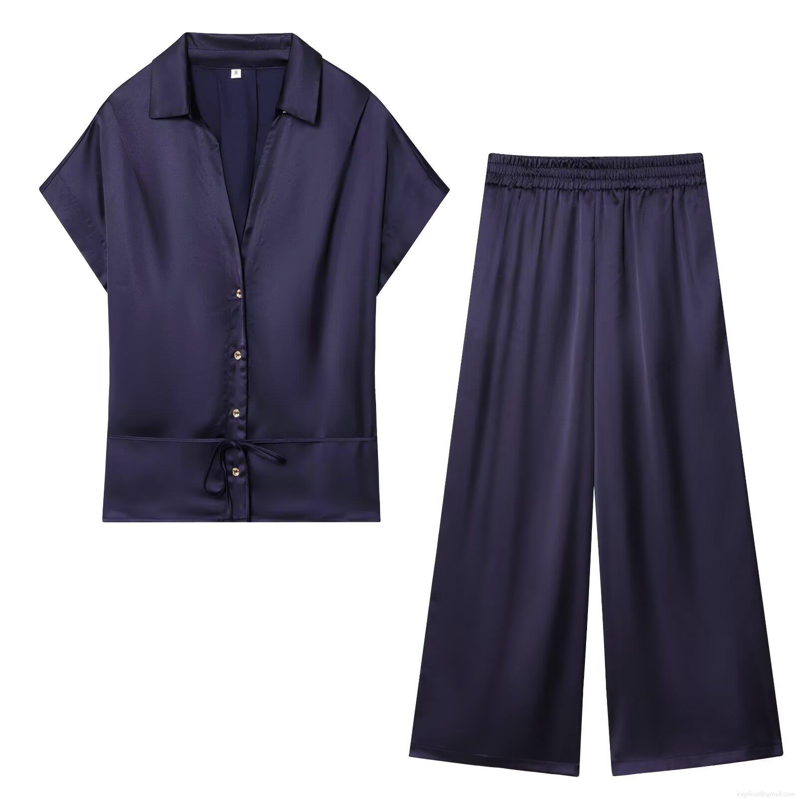 Solid Color, V-neck, Single-breasted, Satin Texture, Belt Tie, Wide Legs