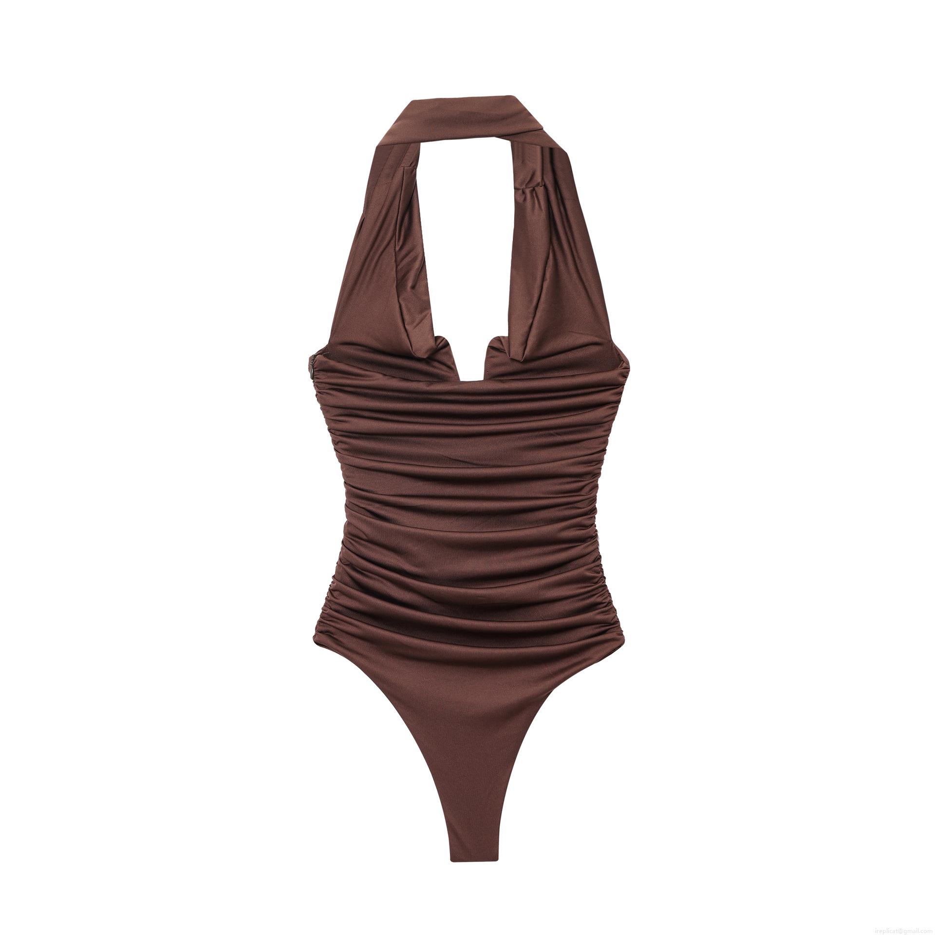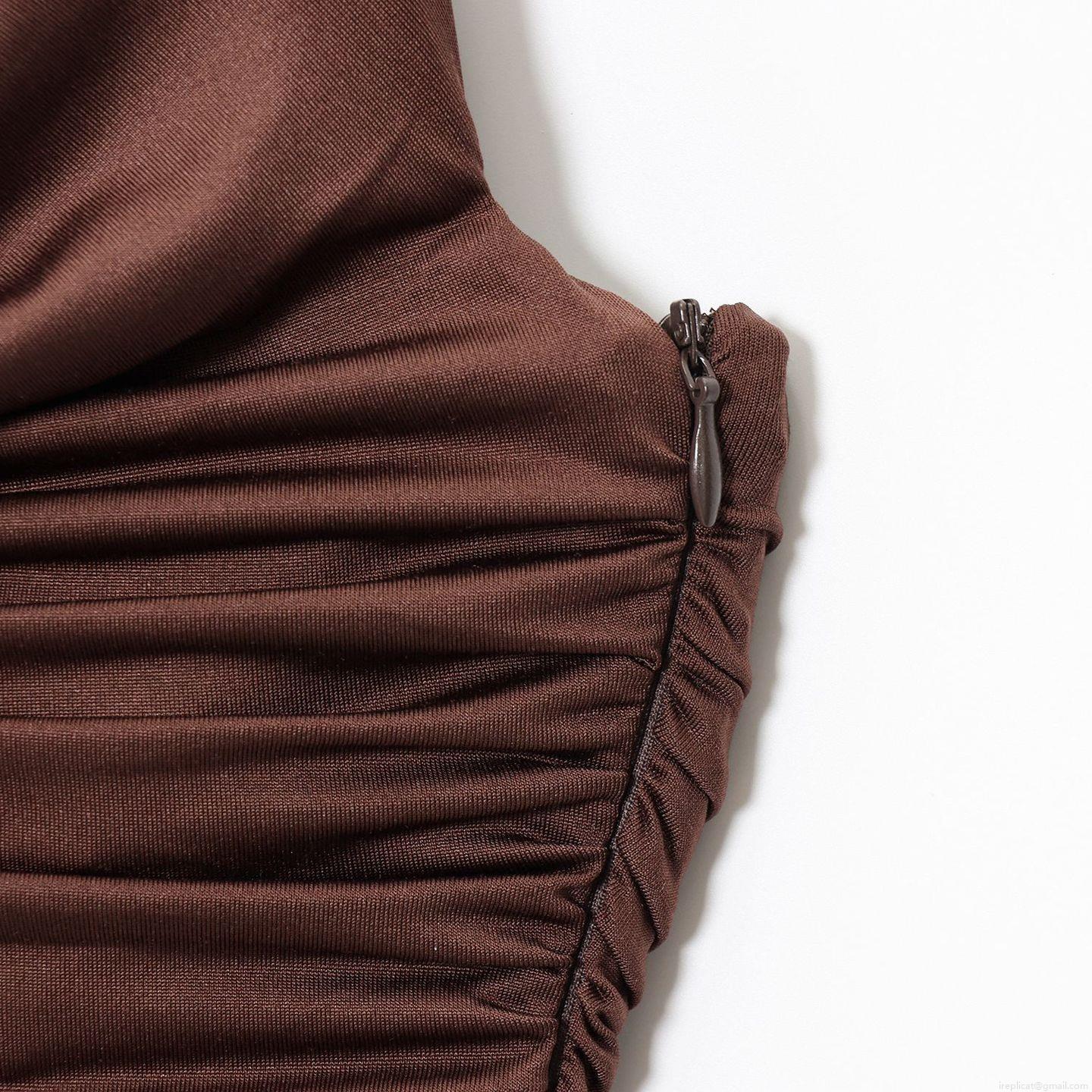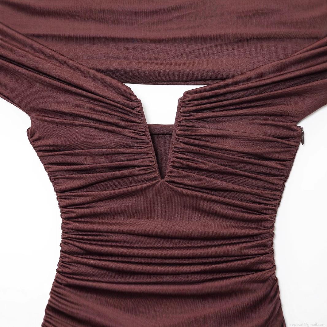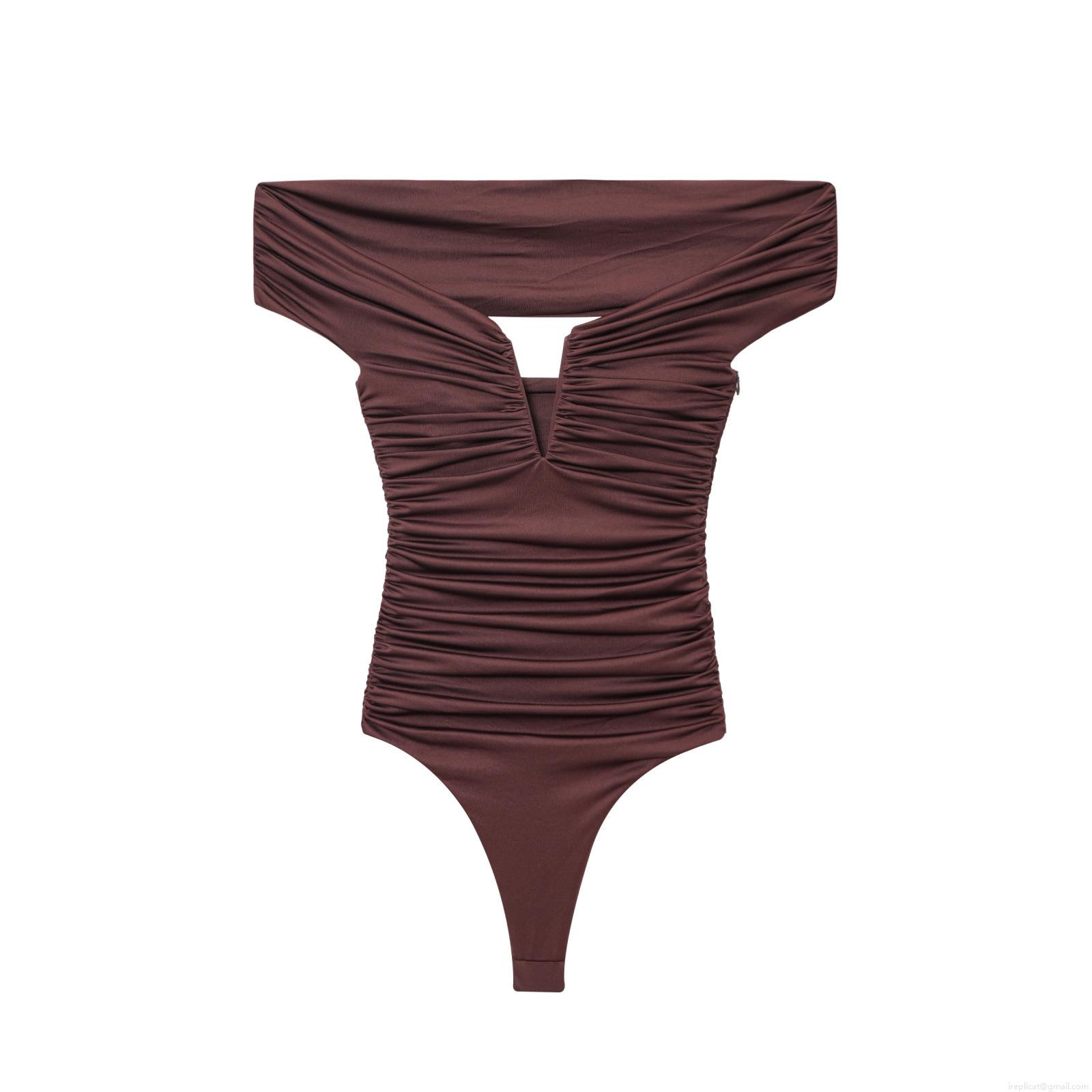 Solid Color, V-neck, Gathering, Off-the-shoulder Neckline, Concealed Side Zipper