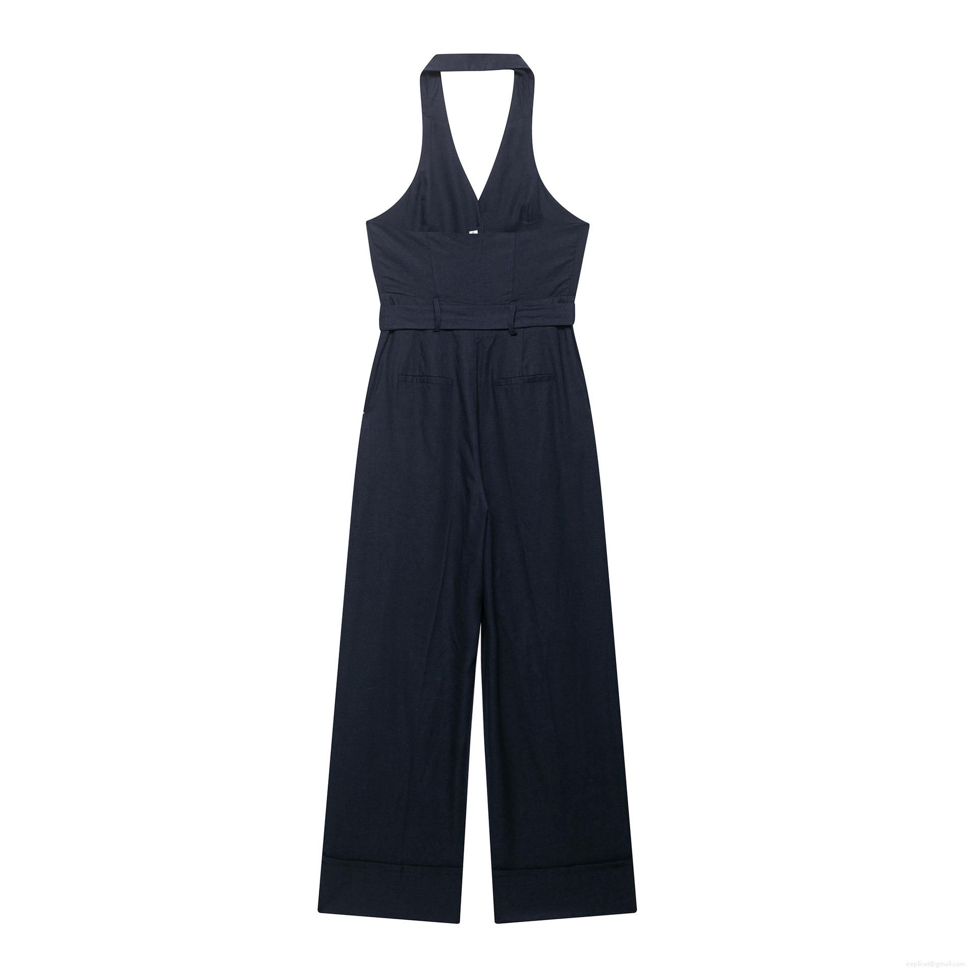 Solid Color, Belt, Neckband, Backless, Wide-leg, Suit Lapel
