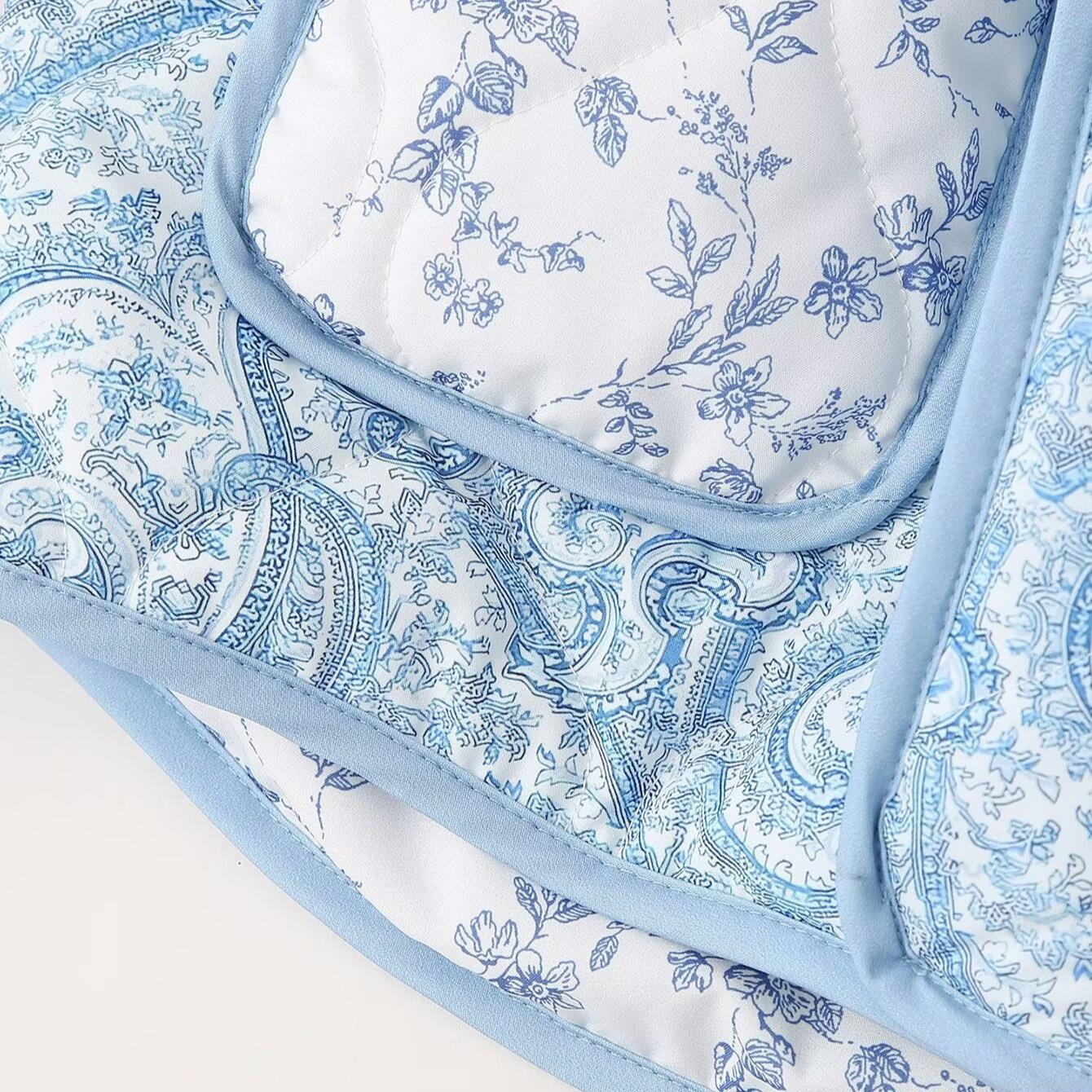 Cashew Flowers, Floral Pattern, Snap Fastener, Lapel, Paisley Pattern, Quilted Design, Sticker Bag, Blue Edging