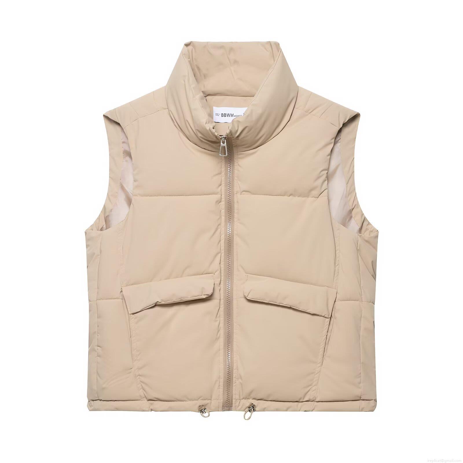 Solid Color, Pocket Decoration, Stand-up Collar Design, Drawstring Hem