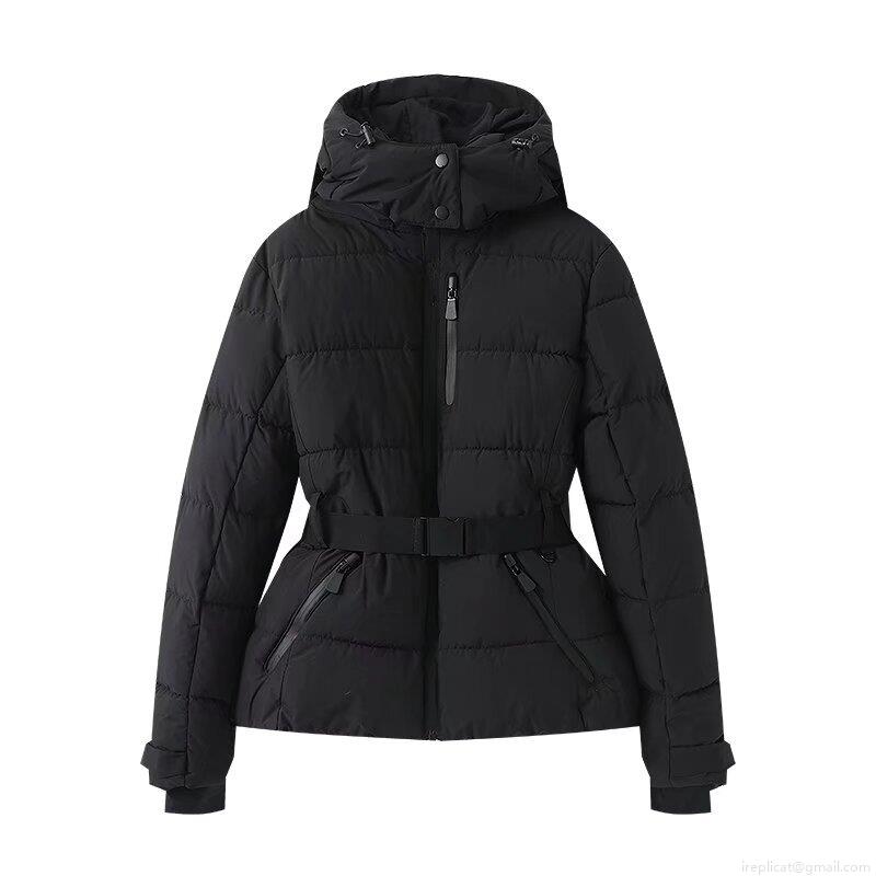 Solid Color, Zipper, Belt, Hood, Metallic Luster, Geometric Diamond Pattern