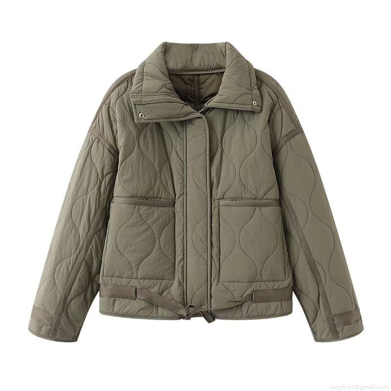 Solid Color, Lace-up Decoration, Stand-up Collar Design, Big Pocket, Wavy Quilting
