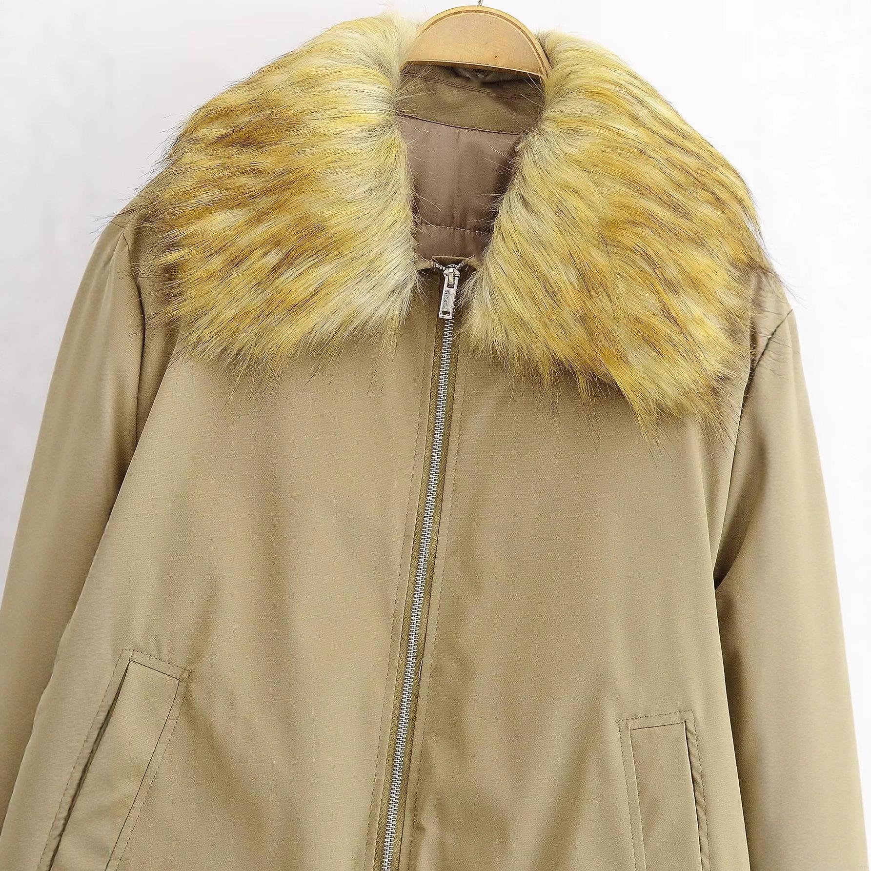 Solid Color, Multi-pocket Design, Drawstring Hem, Detachable Fur Collar