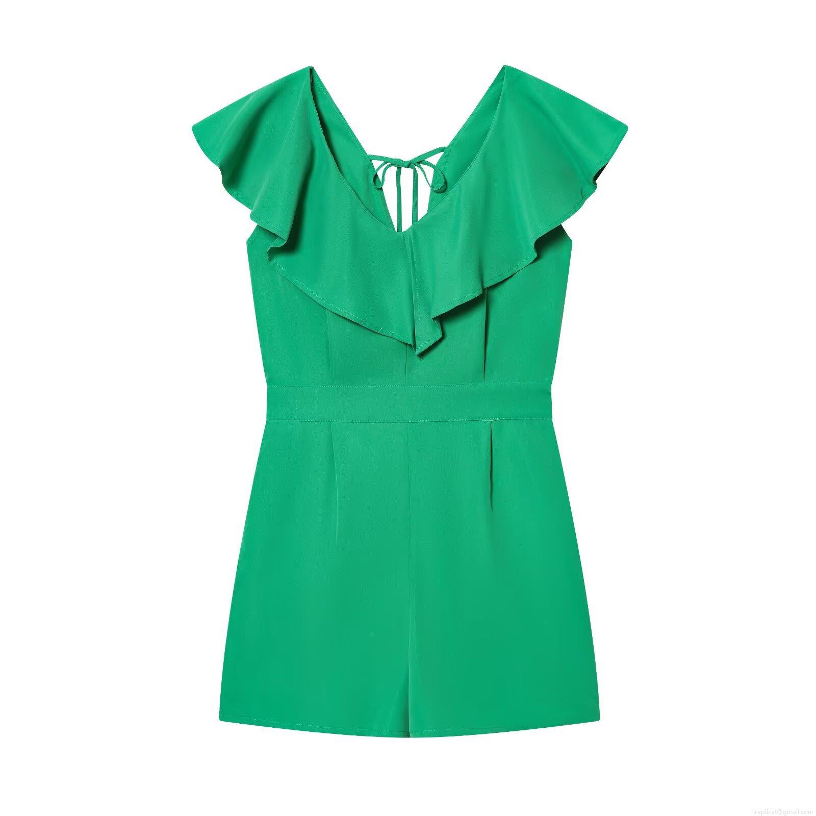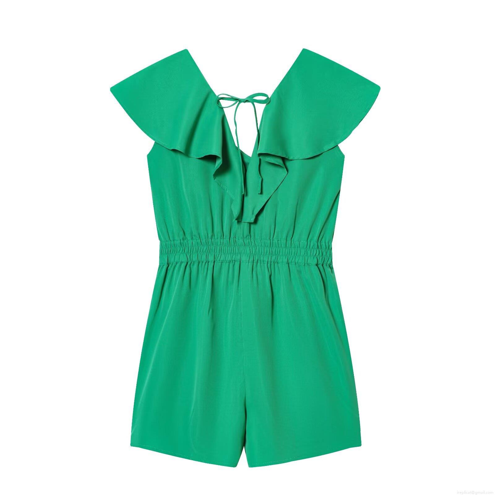 Solid Color, Ruffles, Waist shaping, V-neck, Lace