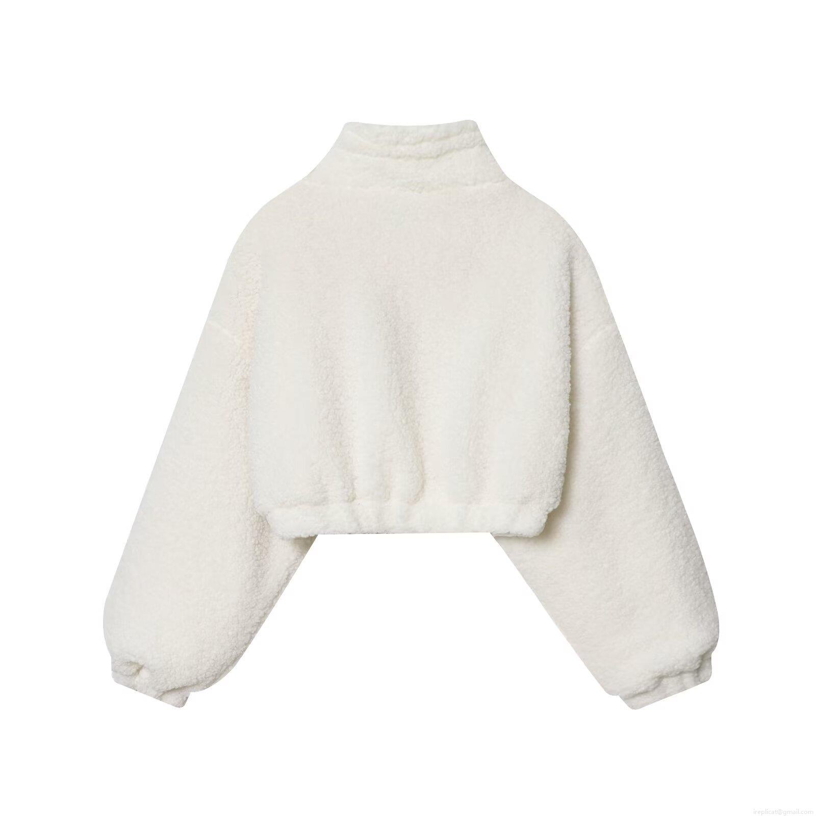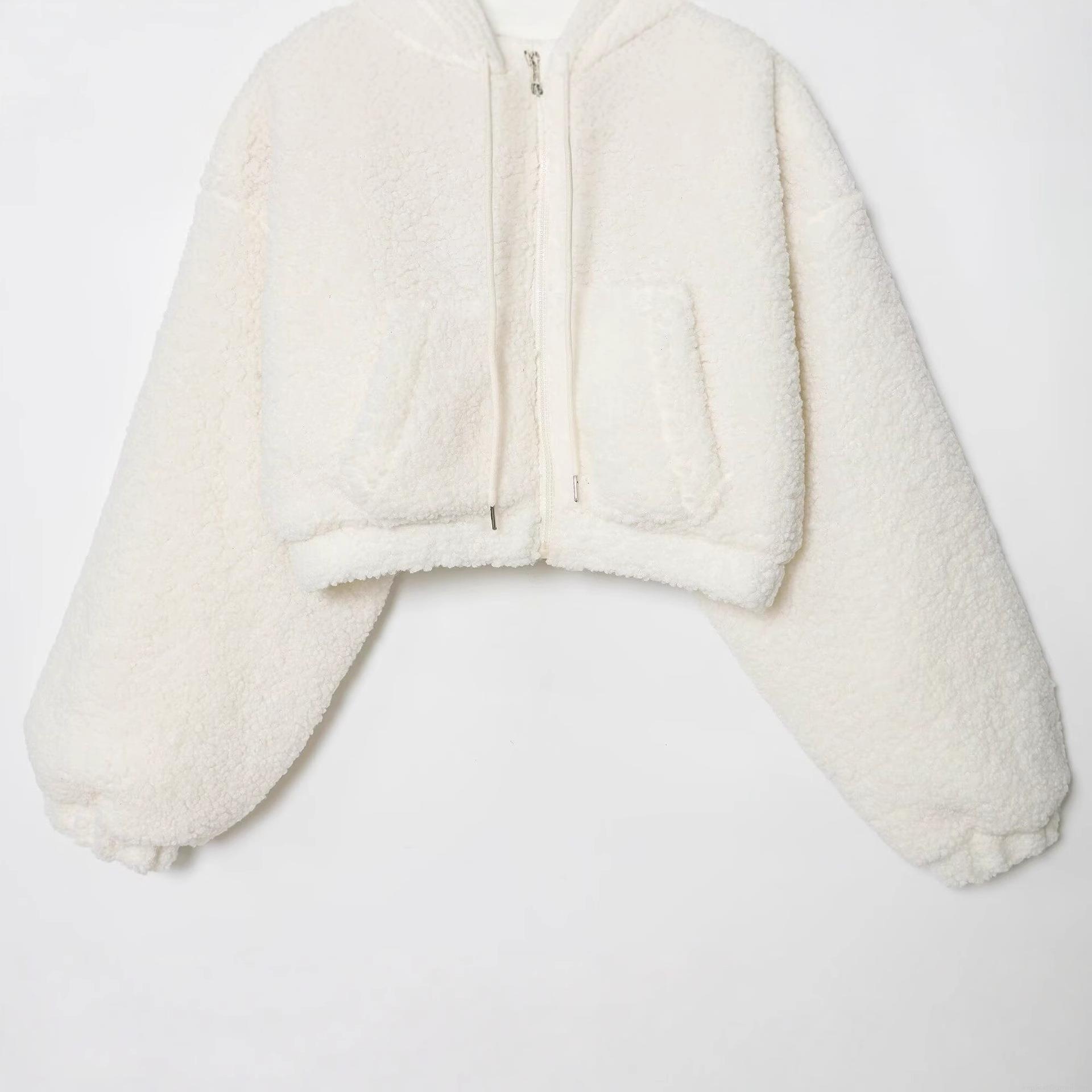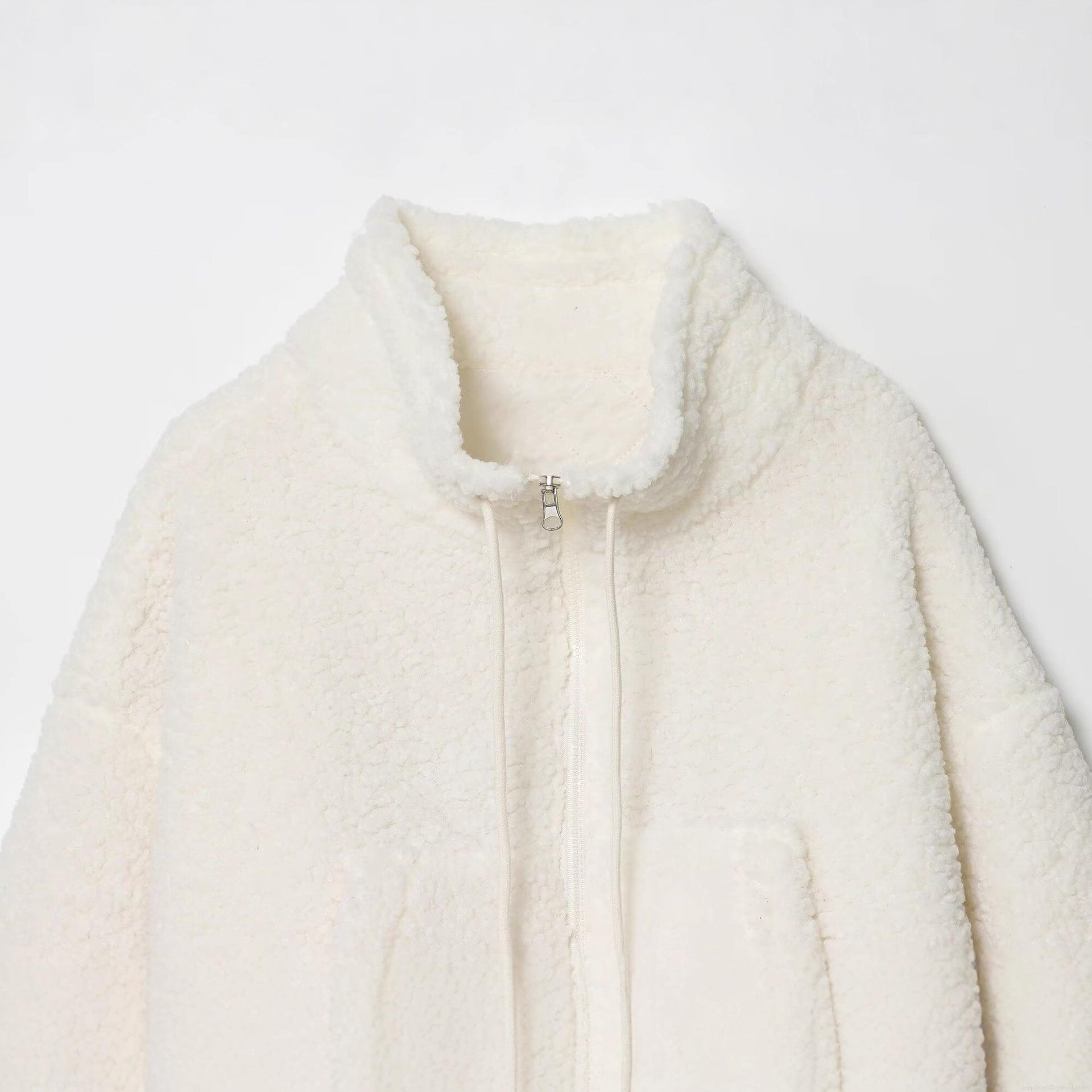 Solid Color, Zipper, Drawstring, Lamb Wool Texture