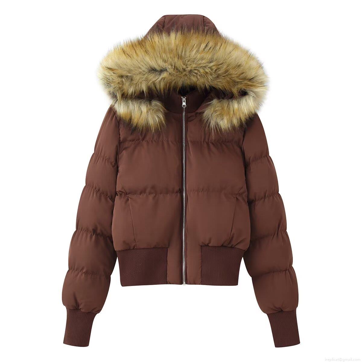 Solid Color, Patch, Hood, Quilted Texture, Ribbed Seam, Artificial Fur Collar