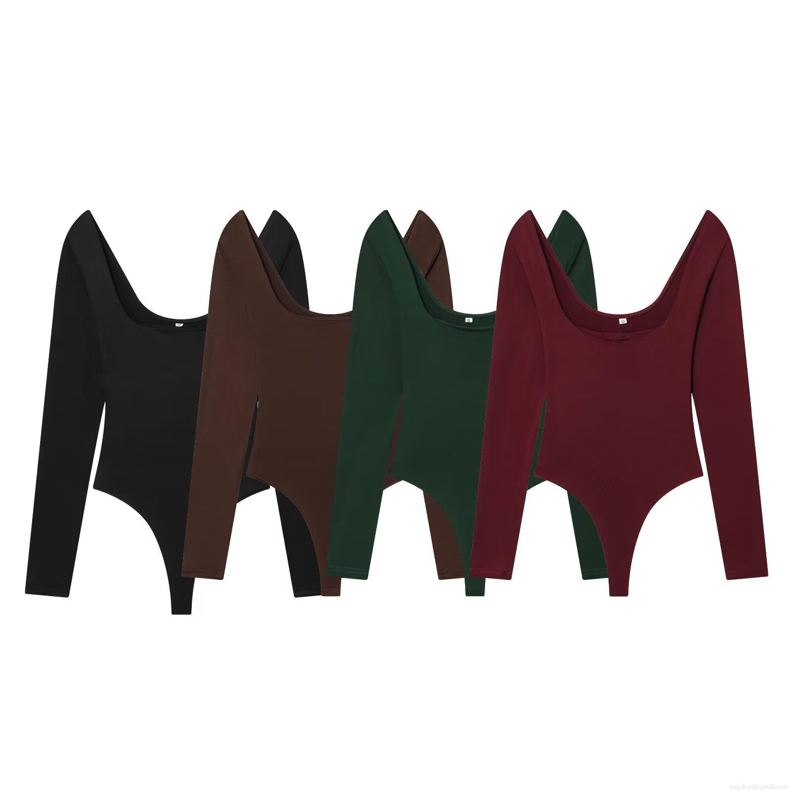 Solid Color, Square Collar, Slim Fit Design, U-neck, One-piece Cut