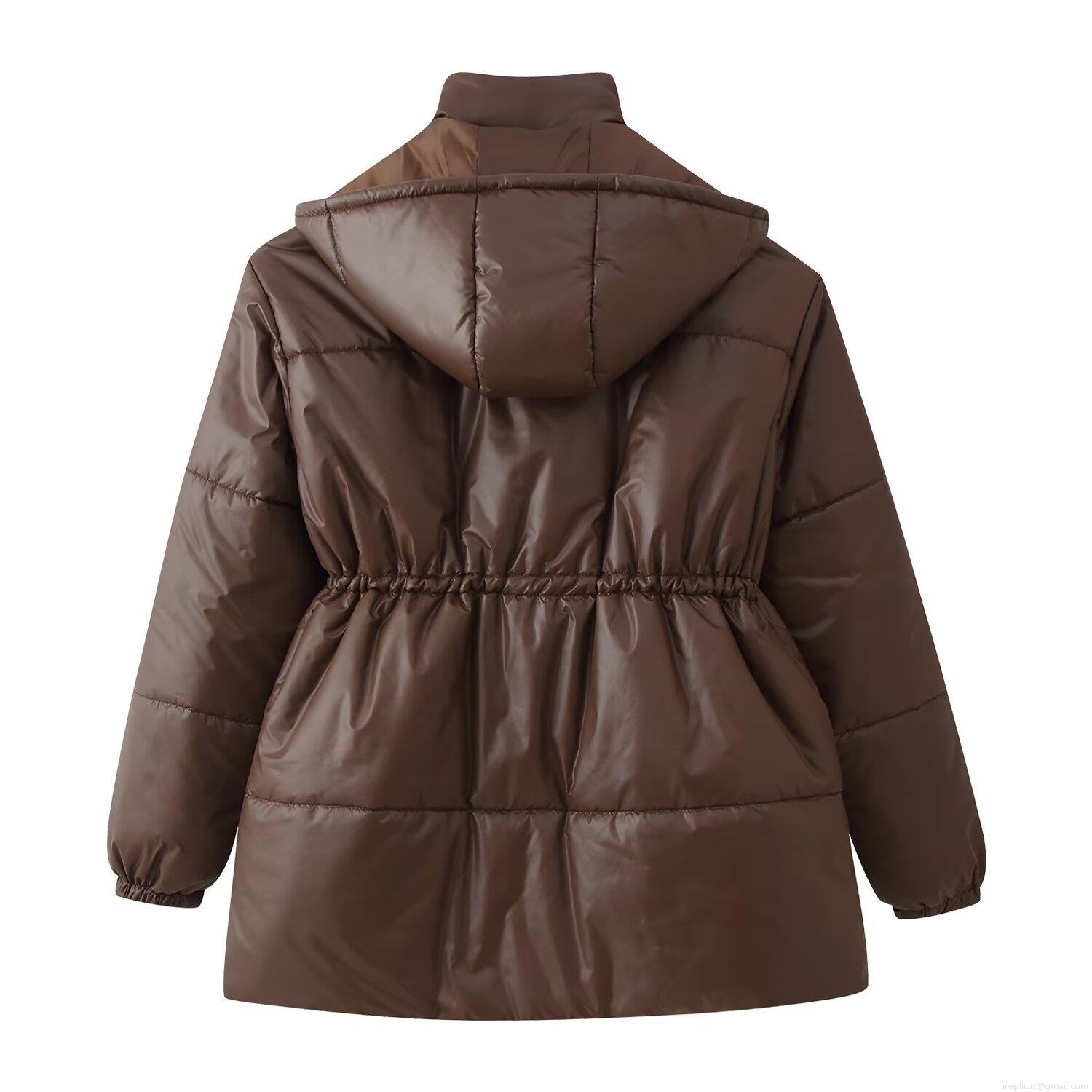 Solid Color, Metal Zipper, Quilting, Hooded Design, Drawstring Waist