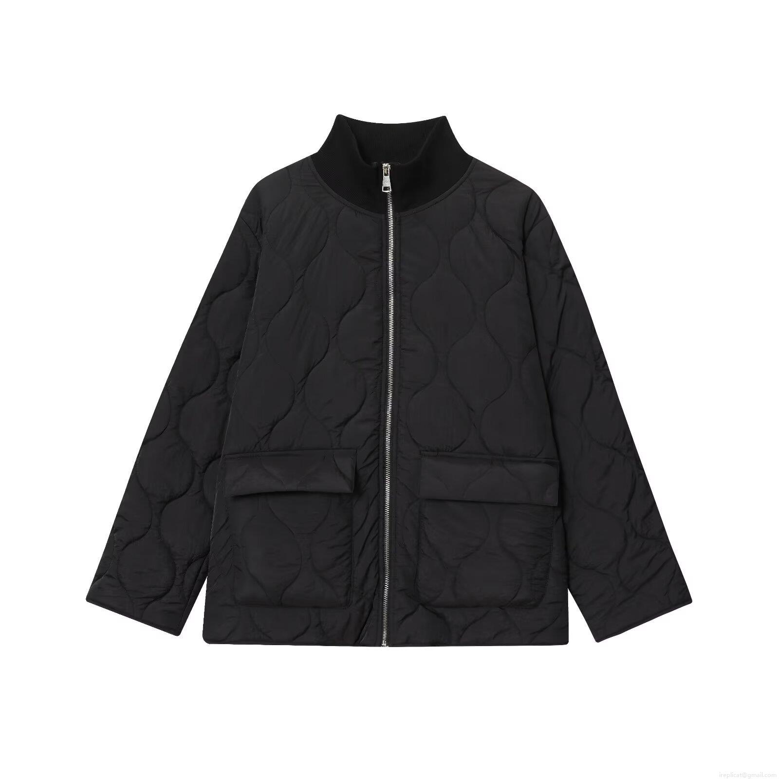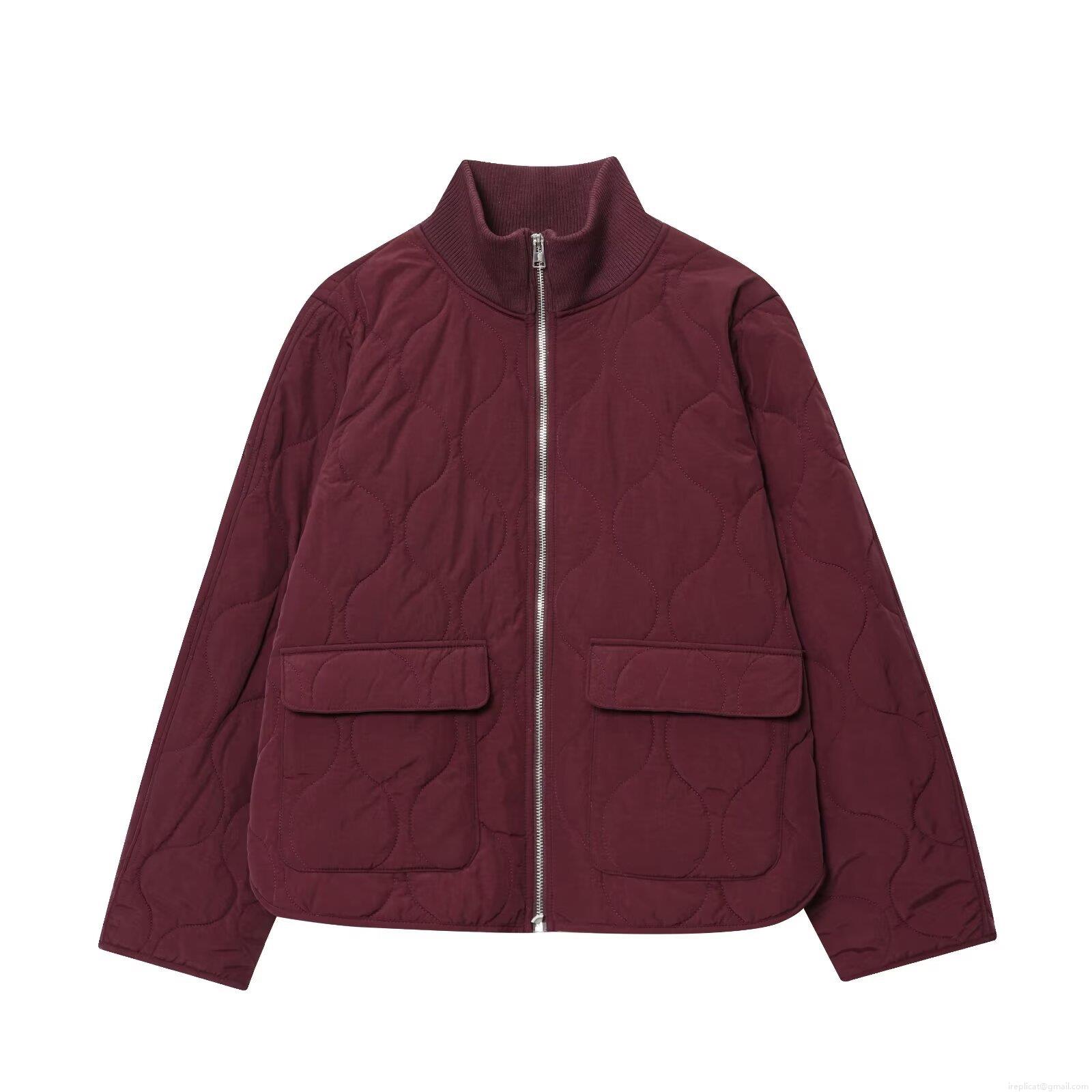 Solid Color, Zipper, Quilting, Diamond Quilting, Gourd Pattern Quilting, Big Pocket, Ribbed Stand Collar