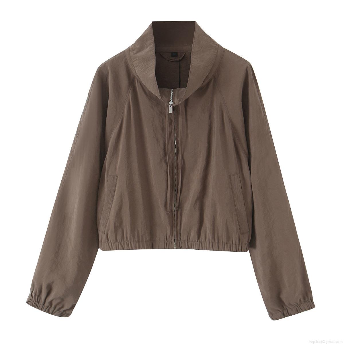 Solid Color, Bead, Zipper, Drawstring, Micro-wrinkled Texture